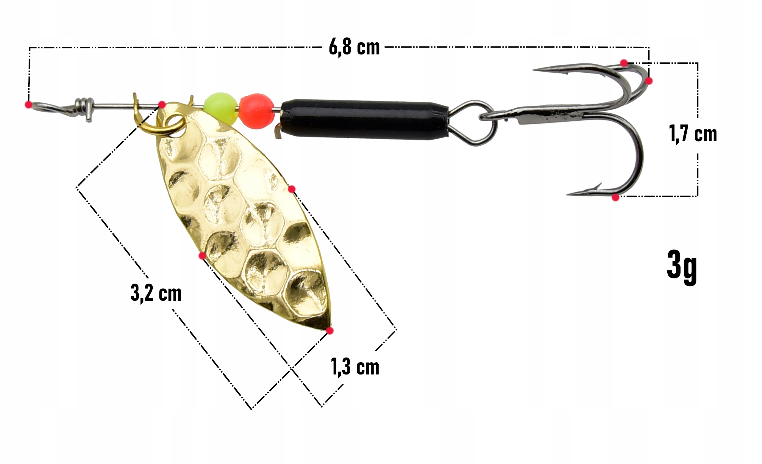 Błystka obrotowa o wadze 3 gramów to niezawodna przynęta, która sprawdzi się w każdych warunkach – zarówno w wodach stojących, jak i w rzekach o umiarkowanym nurcie. Dzięki odpowiedniemu wyważeniu i płynnej pracy skrzydełka skutecznie przyciąga uwagę drapieżników, pobudzając ich instynkt do ataku.
