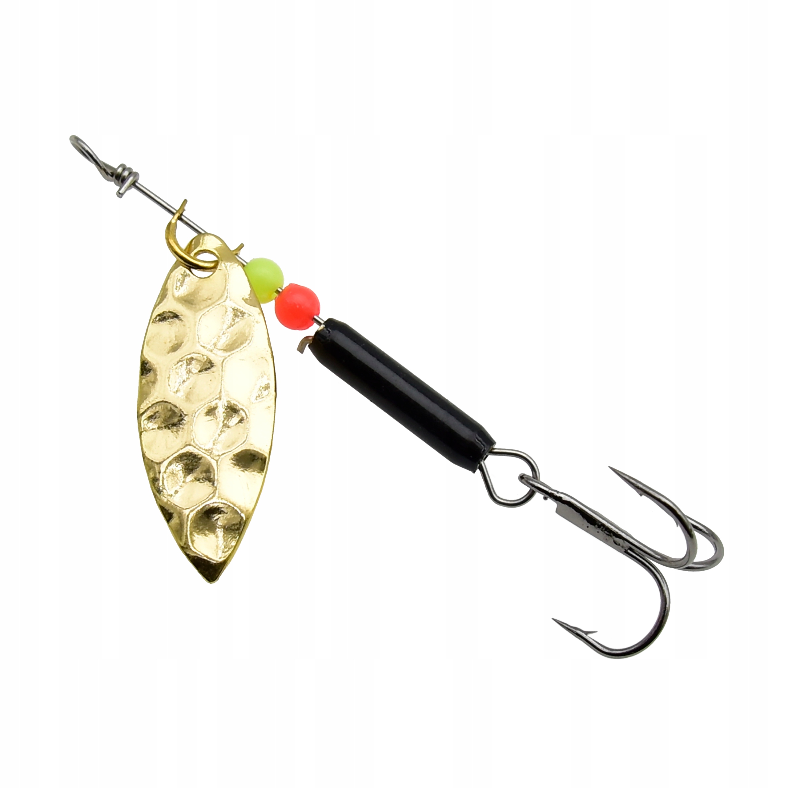 Solidna konstrukcja oparta na metalowym trzpieniu gwarantuje trwałość i odporność na odkształcenia. Na osi umieszczone są koraliki stabilizujące pracę skrzydełka, które pomagają utrzymać jego równomierne obroty podczas prowadzenia przynęty. Całość uzupełnia ostrze potrójnego haka zapewniające pewne i skuteczne zacięcie.