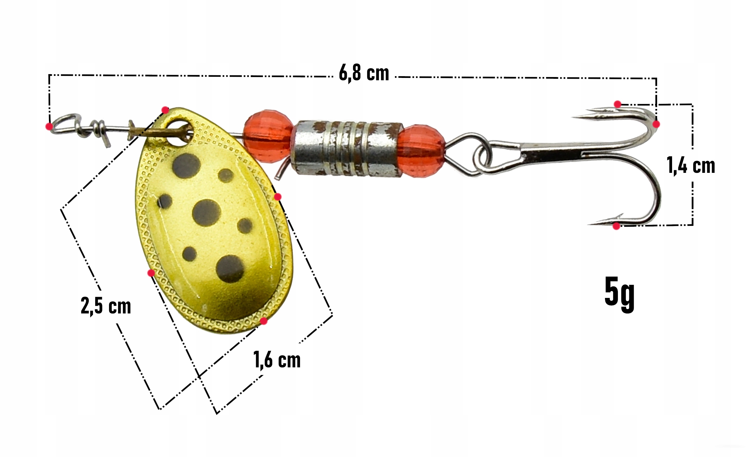 Błystka obrotowa o wadze 5 gramów to niezawodna przynęta, która sprawdzi się w każdych warunkach – zarówno w wodach stojących, jak i w rzekach o umiarkowanym nurcie. Dzięki odpowiedniemu wyważeniu i płynnej pracy skrzydełka skutecznie przyciąga uwagę drapieżników, pobudzając ich instynkt do ataku.
