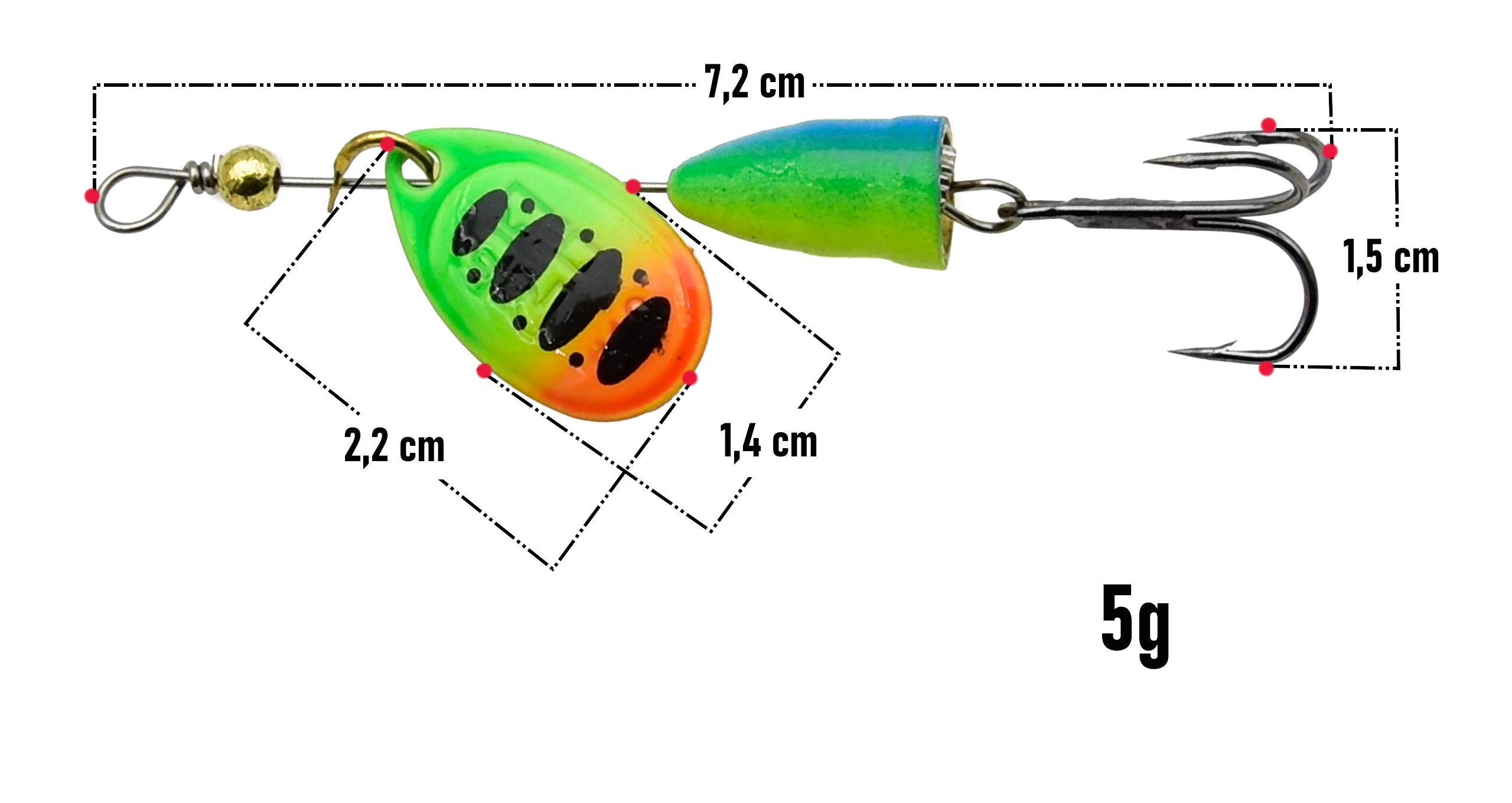 Błystka obrotowa o wadze 5 gramów to niezawodna przynęta, która sprawdzi się w każdych warunkach – zarówno w wodach stojących, jak i w rzekach o umiarkowanym nurcie. Dzięki odpowiedniemu wyważeniu i płynnej pracy skrzydełka skutecznie przyciąga uwagę drapieżników, pobudzając ich instynkt do ataku.