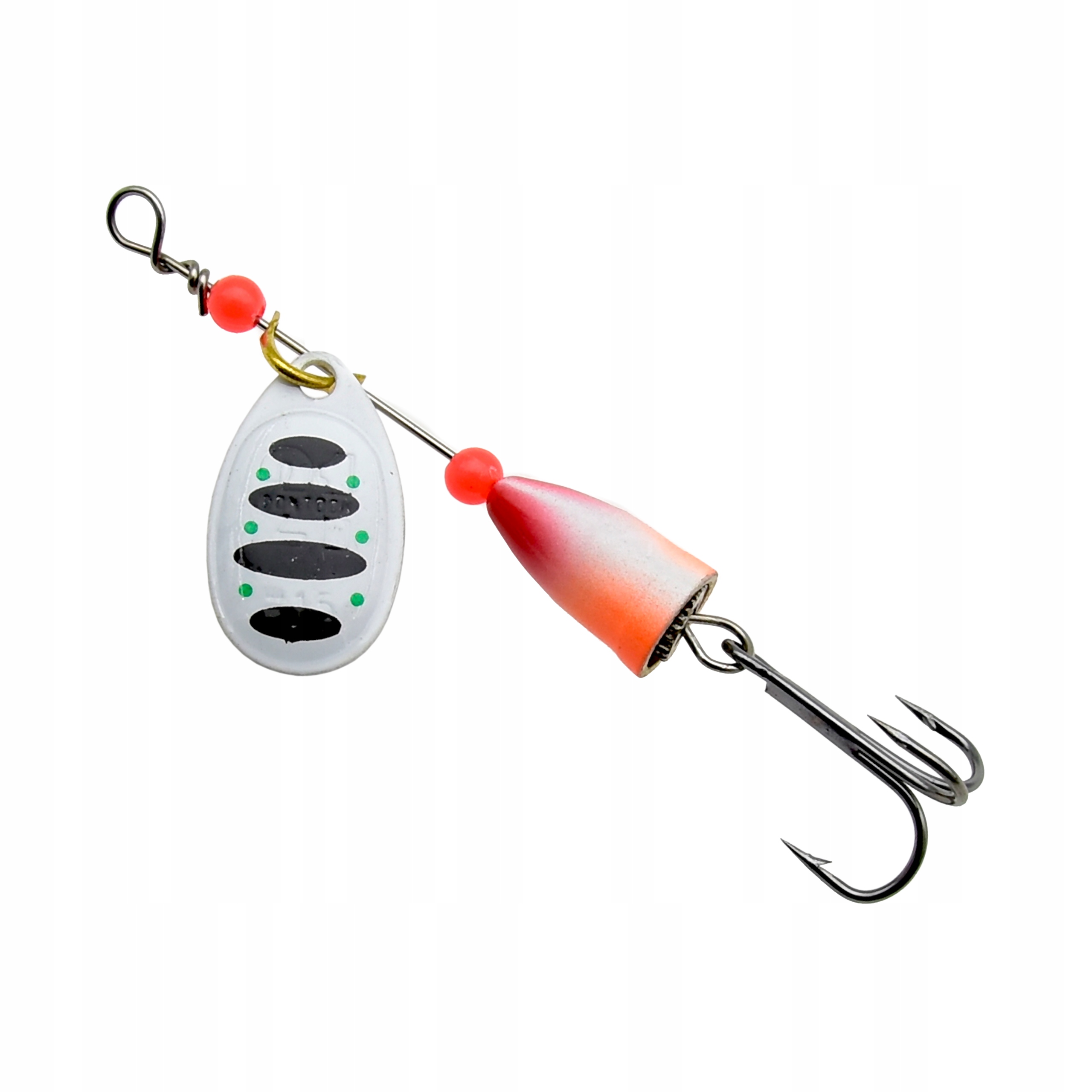 Solidna konstrukcja oparta na metalowym trzpieniu gwarantuje trwałość i odporność na odkształcenia. Na osi umieszczone są koraliki stabilizujące pracę skrzydełka, które pomagają utrzymać jego równomierne obroty podczas prowadzenia przynęty. Całość uzupełnia ostrze potrójnego haka zapewniające pewne i skuteczne zacięcie.