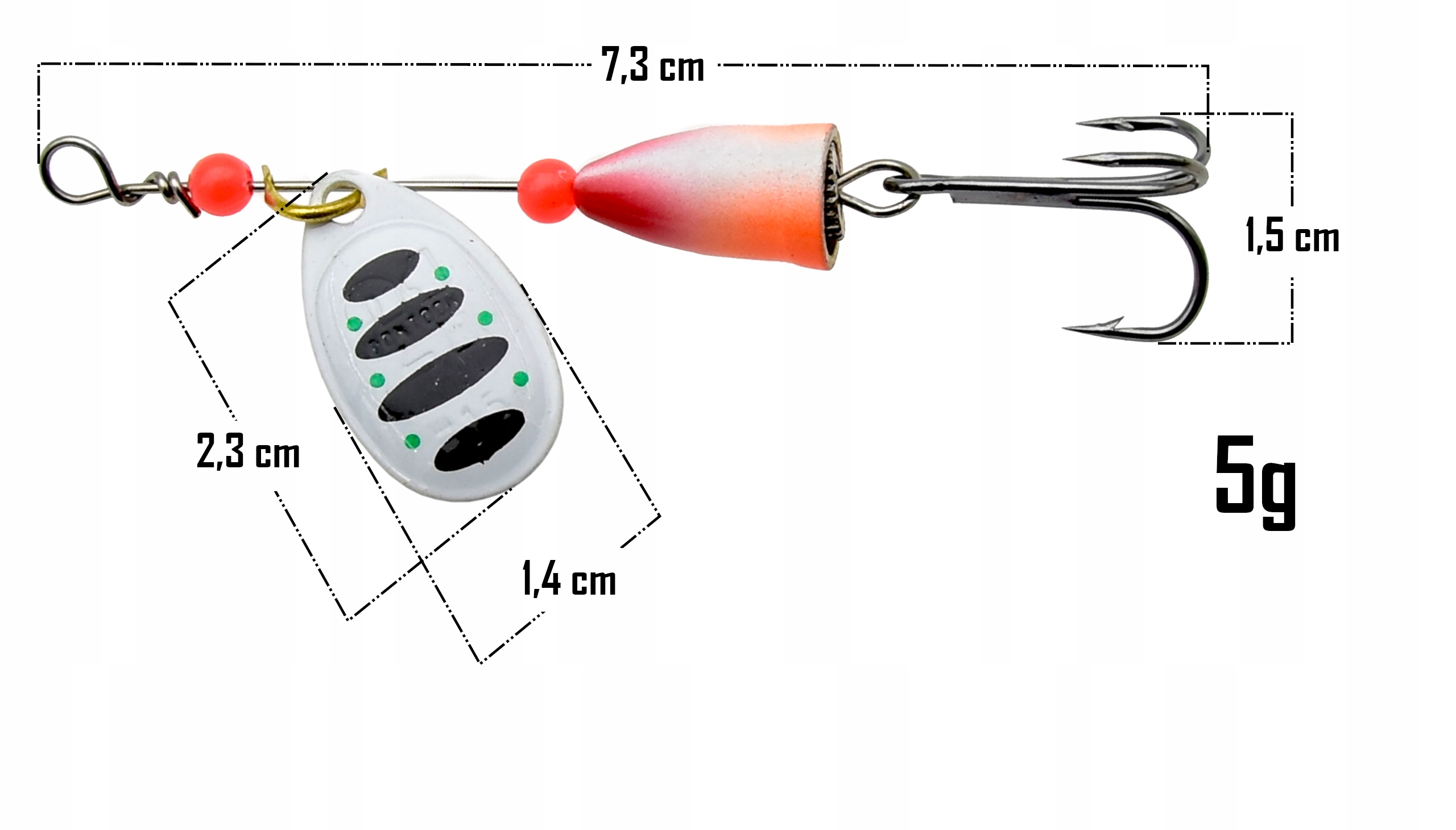 Błystka obrotowa o wadze 5 gramów to niezawodna przynęta, która sprawdzi się w każdych warunkach – zarówno w wodach stojących, jak i w rzekach o umiarkowanym nurcie. Dzięki odpowiedniemu wyważeniu i płynnej pracy skrzydełka skutecznie przyciąga uwagę drapieżników, pobudzając ich instynkt do ataku.