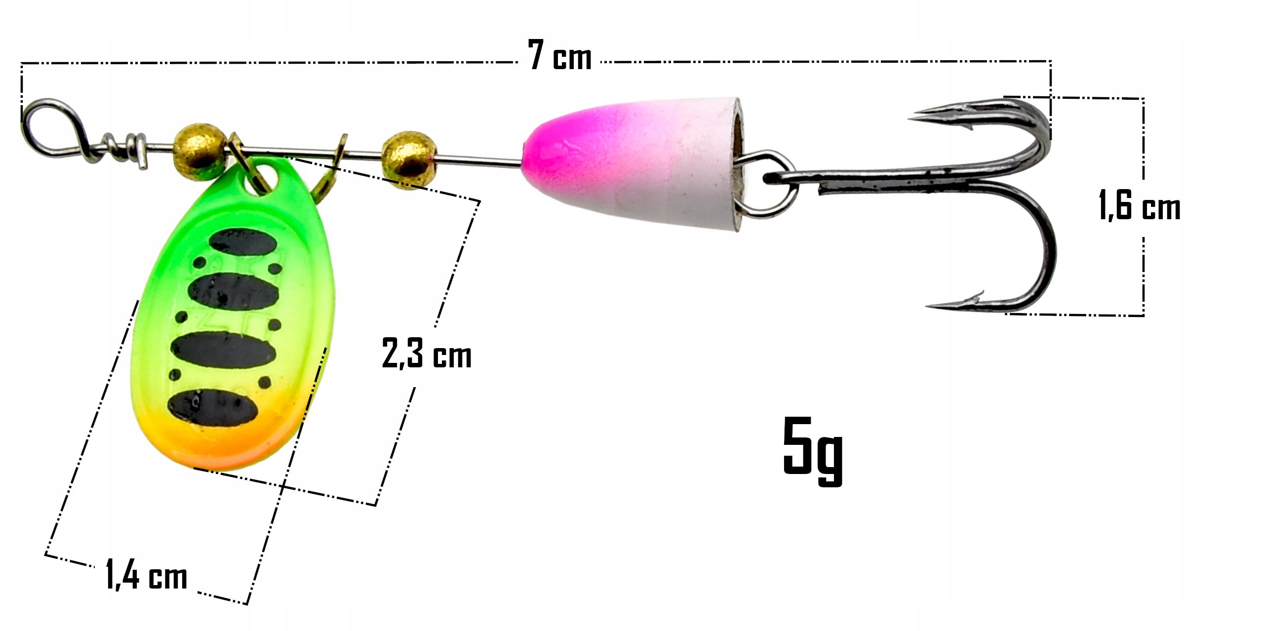 Błystka obrotowa o wadze 5 gramów to niezawodna przynęta, która sprawdzi się w każdych warunkach – zarówno w wodach stojących, jak i w rzekach o umiarkowanym nurcie. Dzięki odpowiedniemu wyważeniu i płynnej pracy skrzydełka skutecznie przyciąga uwagę drapieżników, pobudzając ich instynkt do ataku.