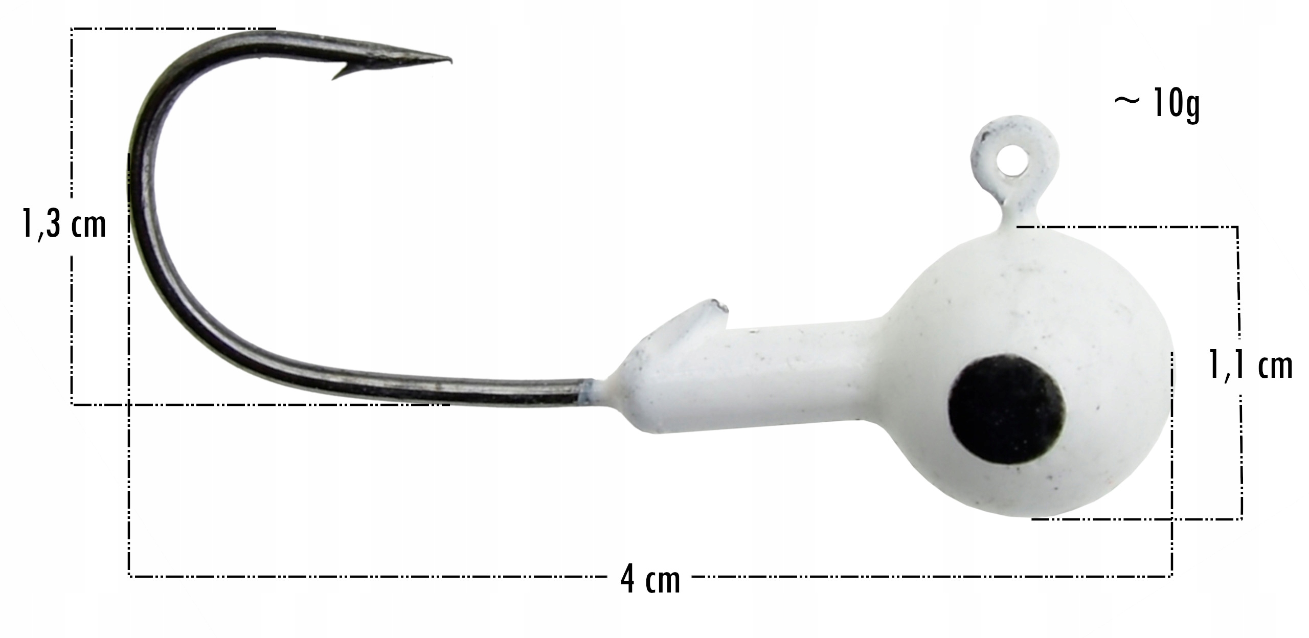 Główka Jigowa hak 3/10g biała z czarną kropką do gum ripperów