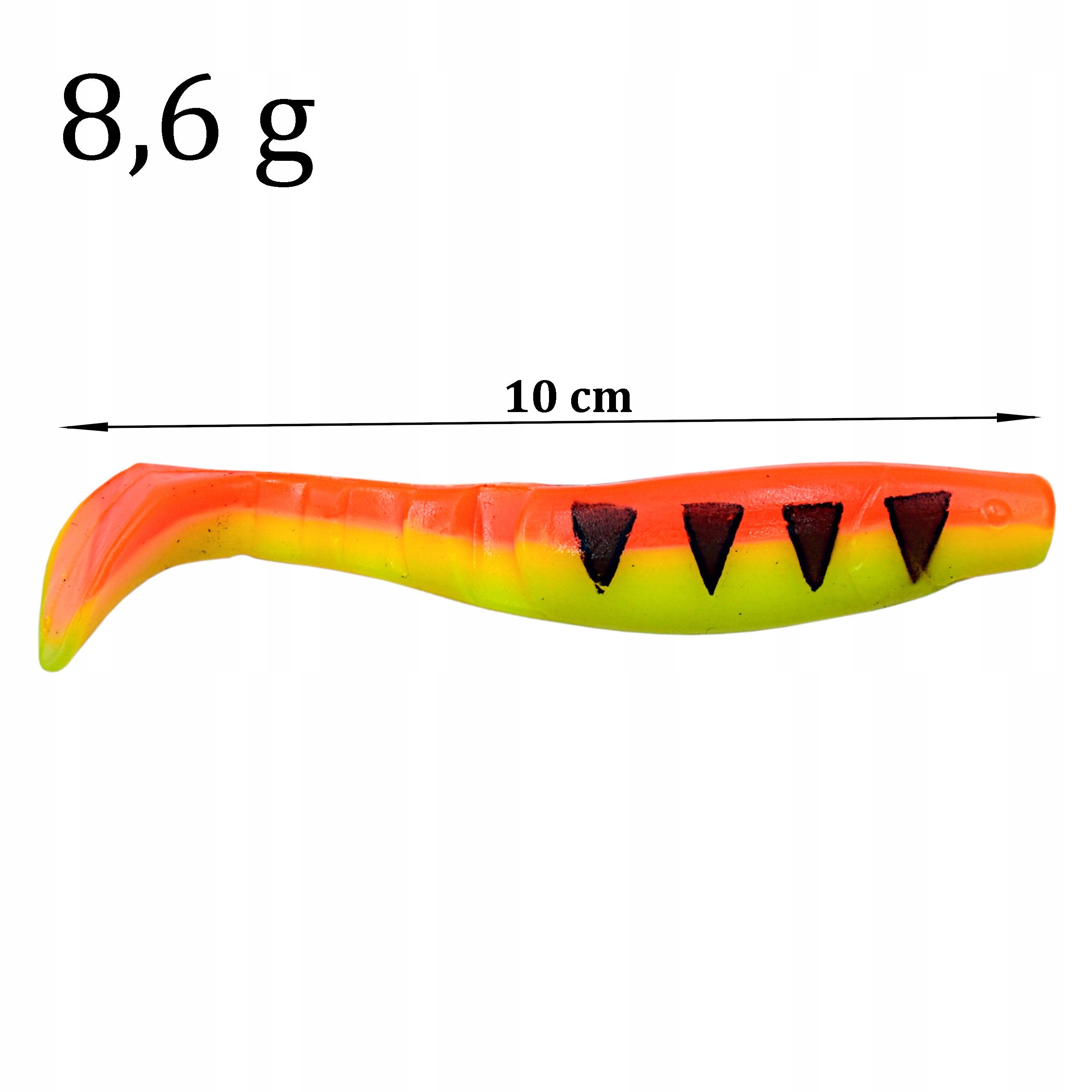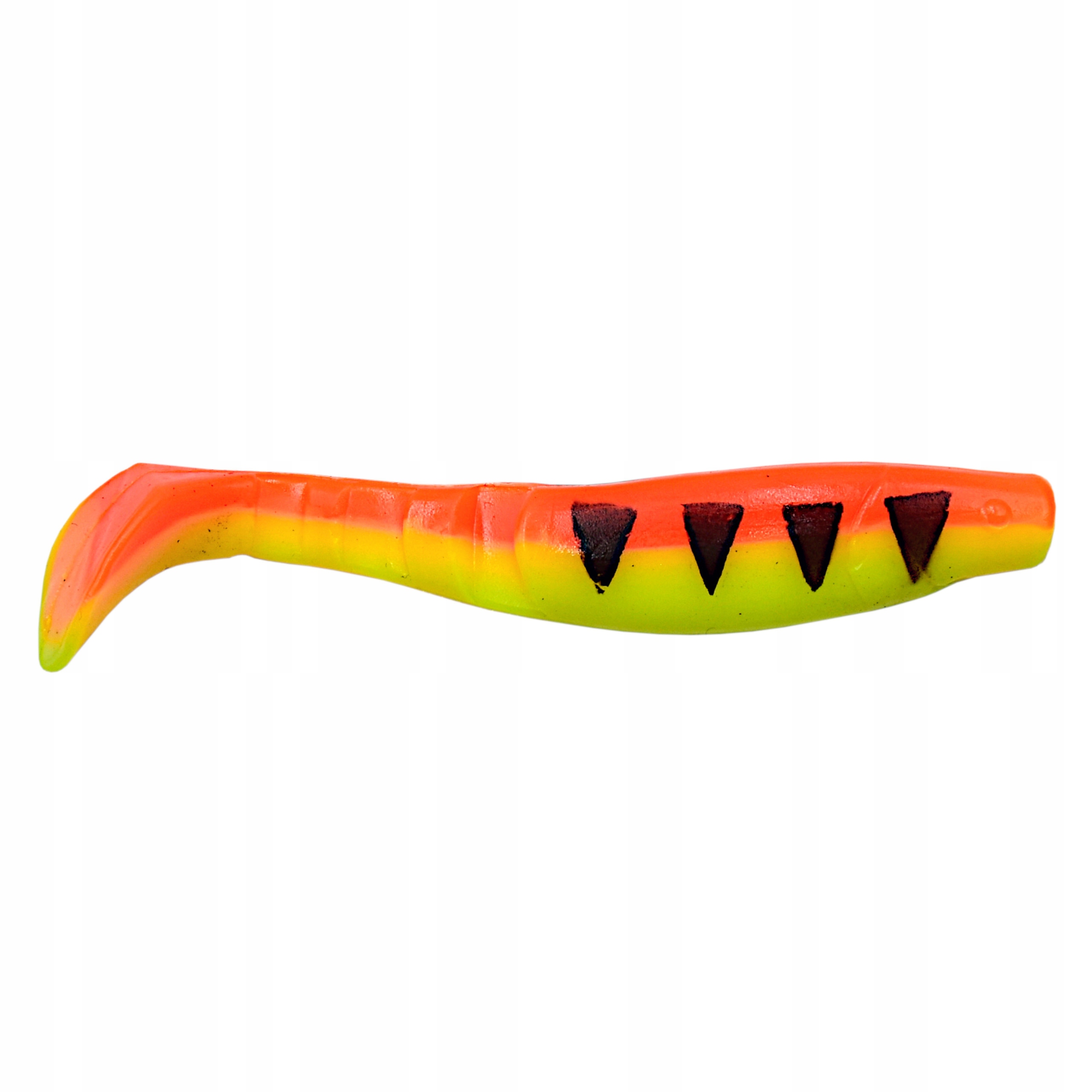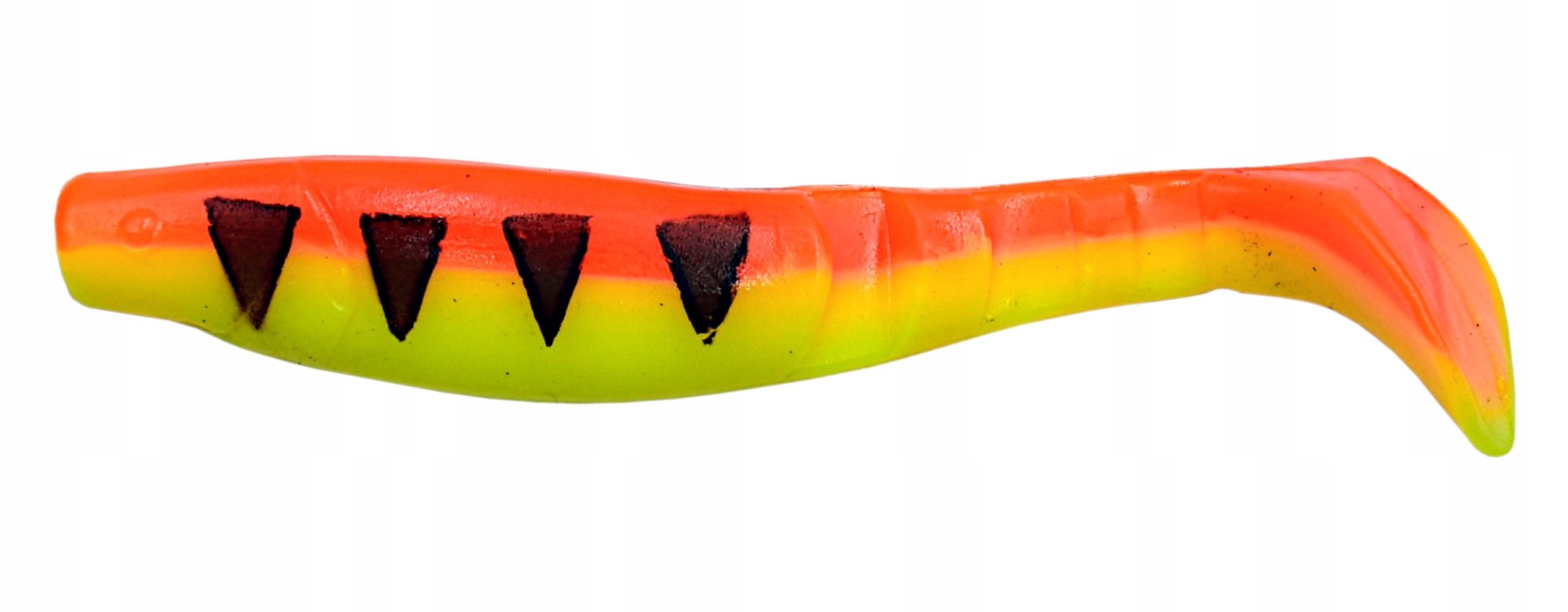 Proponowane przez nas przynęty posiadają charakterystycznie uformowaną płetwę ogonową w stylu kopyta z trzema segmentami zakończonymi masywnym ogonem - co sprawia, że uzyskuje ona odpowiedni ruch w wodzie nawet przy najdelikatniejszym obrocie kołowrotka. Przynęty tego typu sprawdzają się zarówno w jeziorze jak i rzece o silniejszym nurcie. Perfekcyjnie dobrana kolorystyka, agresywna praca, to tylko niektóre z atutów tej przynęty.