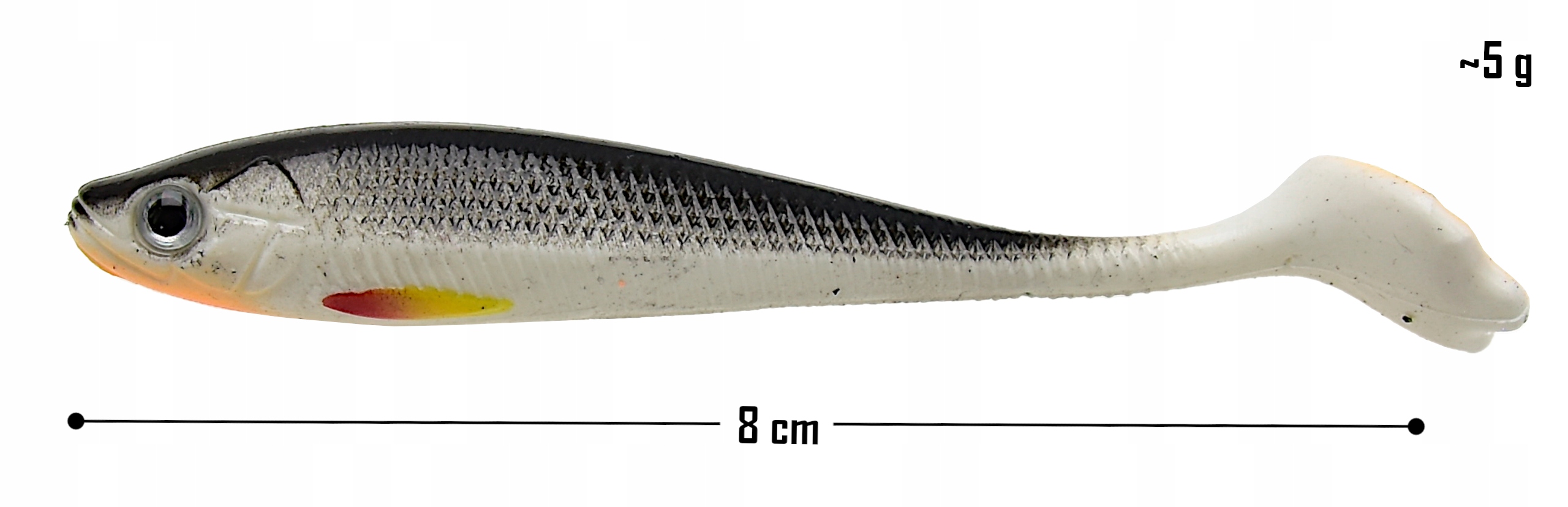 Innowacyjny ogon – szeroka końcówka tworzy nieprzewidywalne drgania w wodzie, co przyciąga drapieżniki nawet przy wolnym prowadzeniu.