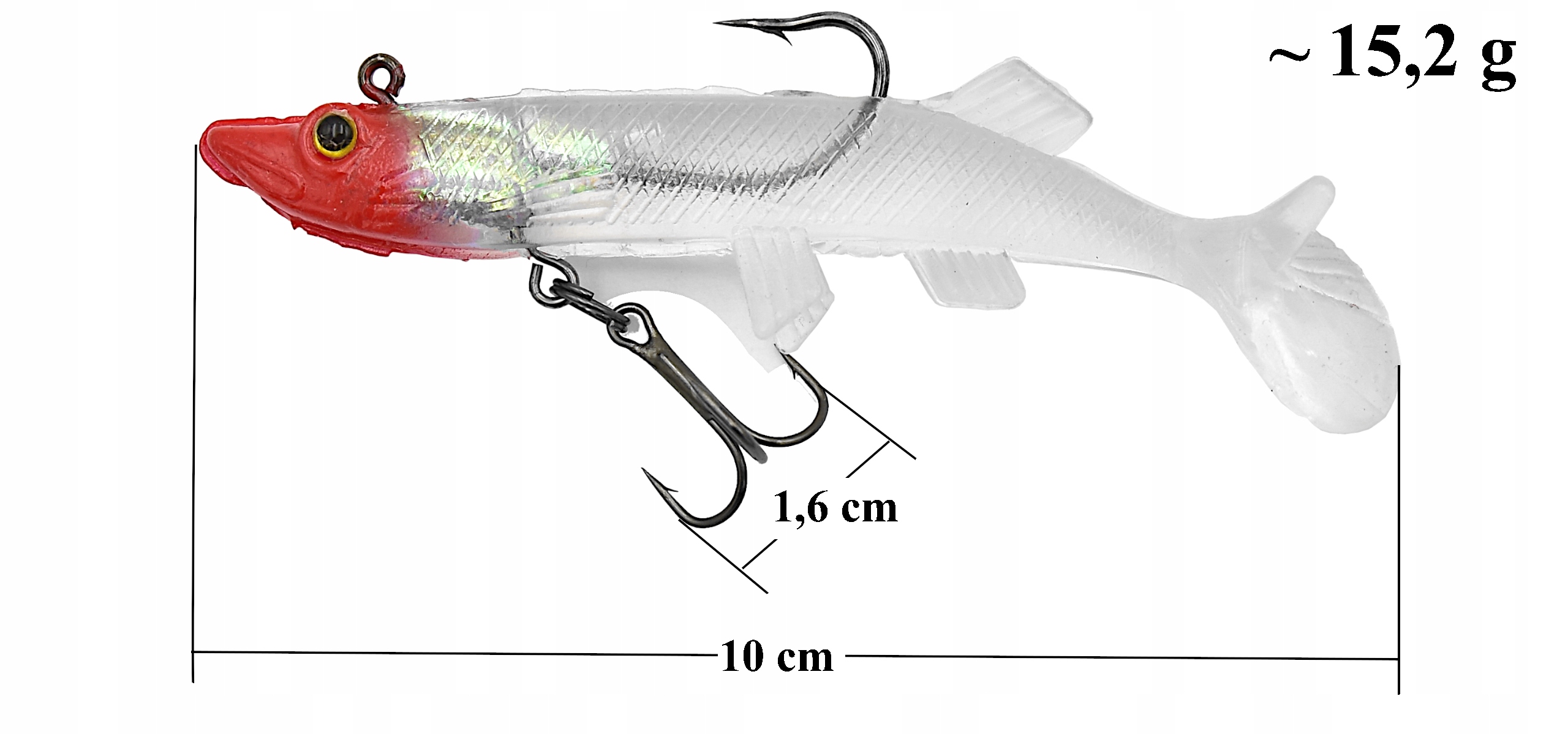 Proponowane przez nas przynęty posiadają trójwymiarowe wklejane oczy oraz charakterystycznie uformowaną płetwę ogonową w stylu kopyta z masywnym ogonem - co sprawia, że uzyskuje ona odpowiedni ruch w wodzie nawet przy najdelikatniejszym obrocie kołowrotka. Dodatkowo gumy uzbrojone są w hak i kotwiczkę oraz posiadają własne obciążenie. Przynęty tego typu sprawdzają się zarówno w jeziorze, na morzu jak i rzece o silniejszym nurcie. Perfekcyjnie dobrana kolorystyka, agresywna praca, to tylko niektóre z atutów tej przynęty.