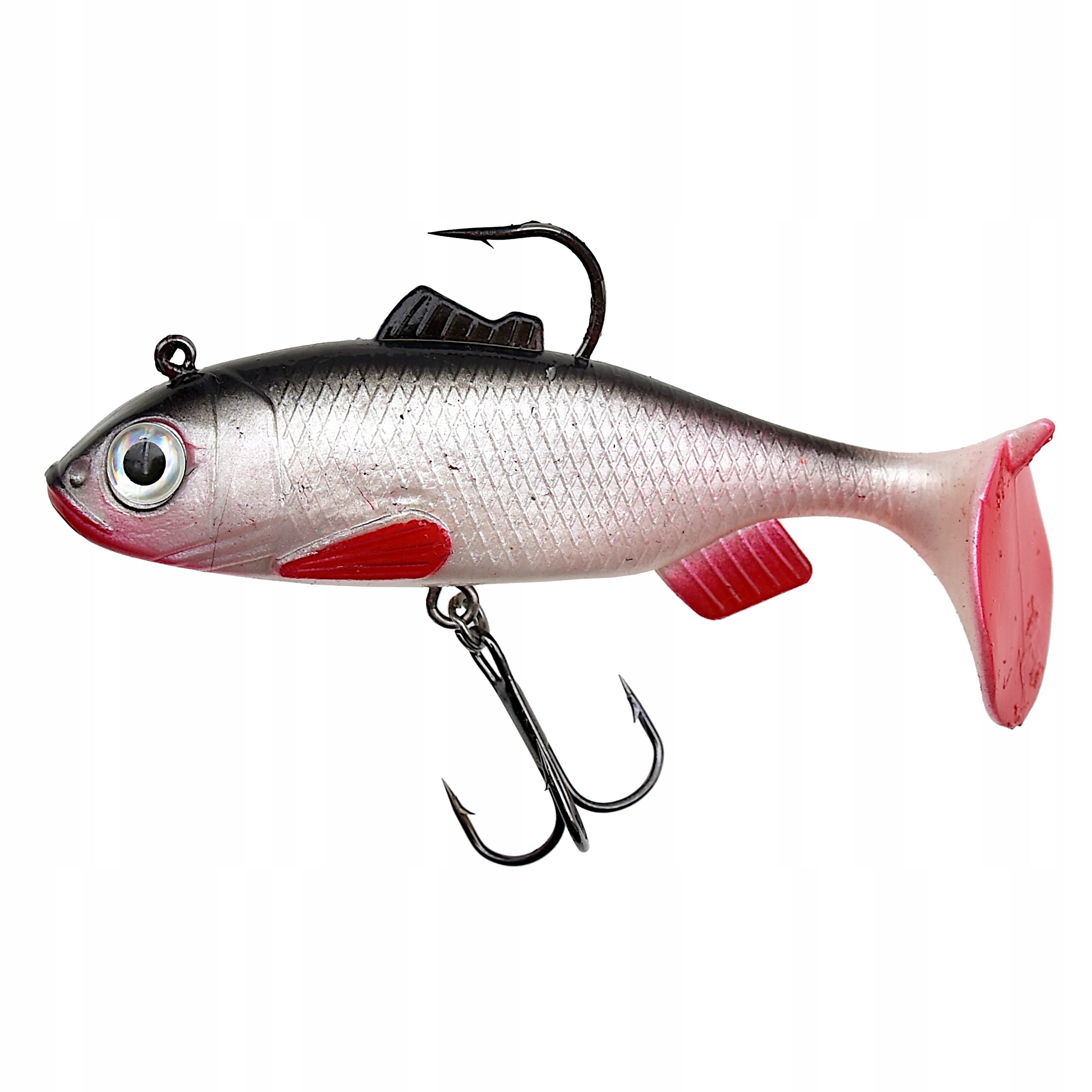 Proponowane przez nas przynęty posiadają trójwymiarowe wklejane oczy oraz charakterystycznie uformowaną płetwę ogonową w stylu kopyta z masywnym ogonem - co sprawia, że uzyskuje ona odpowiedni ruch w wodzie nawet przy najdelikatniejszym obrocie kołowrotka. Dodatkowo gumy uzbrojone są w główkę jigową i kotwiczkę oraz posiadają własne obciążenie. Przynęty tego typu sprawdzają się zarówno w jeziorze, na morzu jak i rzece o silniejszym nurcie. Perfekcyjnie dobrana kolorystyka, agresywna praca, to tylko niektóre z atutów tej przynęty.