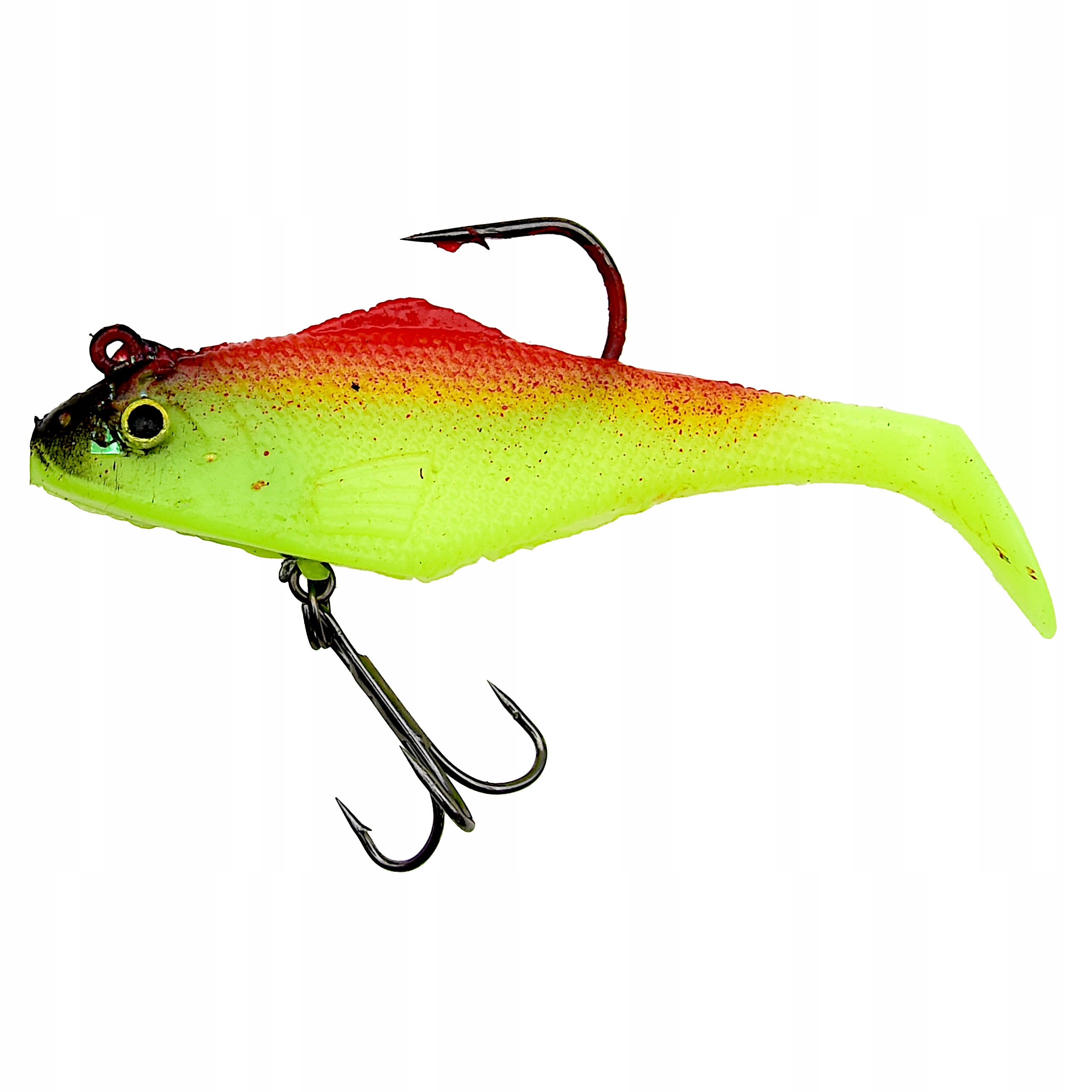 Proponowane przez nas przynęty posiadają trójwymiarowe wklejane oczy oraz charakterystycznie uformowaną płetwę ogonową w stylu kopyta - co sprawia, że uzyskuje ona odpowiedni ruch w wodzie nawet przy najdelikatniejszym obrocie kołowrotka. Dodatkowo gumy uzbrojone są w główkę jigową i kotwiczkę oraz posiadają własne obciążenie. Przynęty tego typu sprawdzają się zarówno w jeziorze, na morzu jak i rzece o silniejszym nurcie. Perfekcyjnie dobrana kolorystyka, agresywna praca, to tylko niektóre z atutów tej przynęty.
