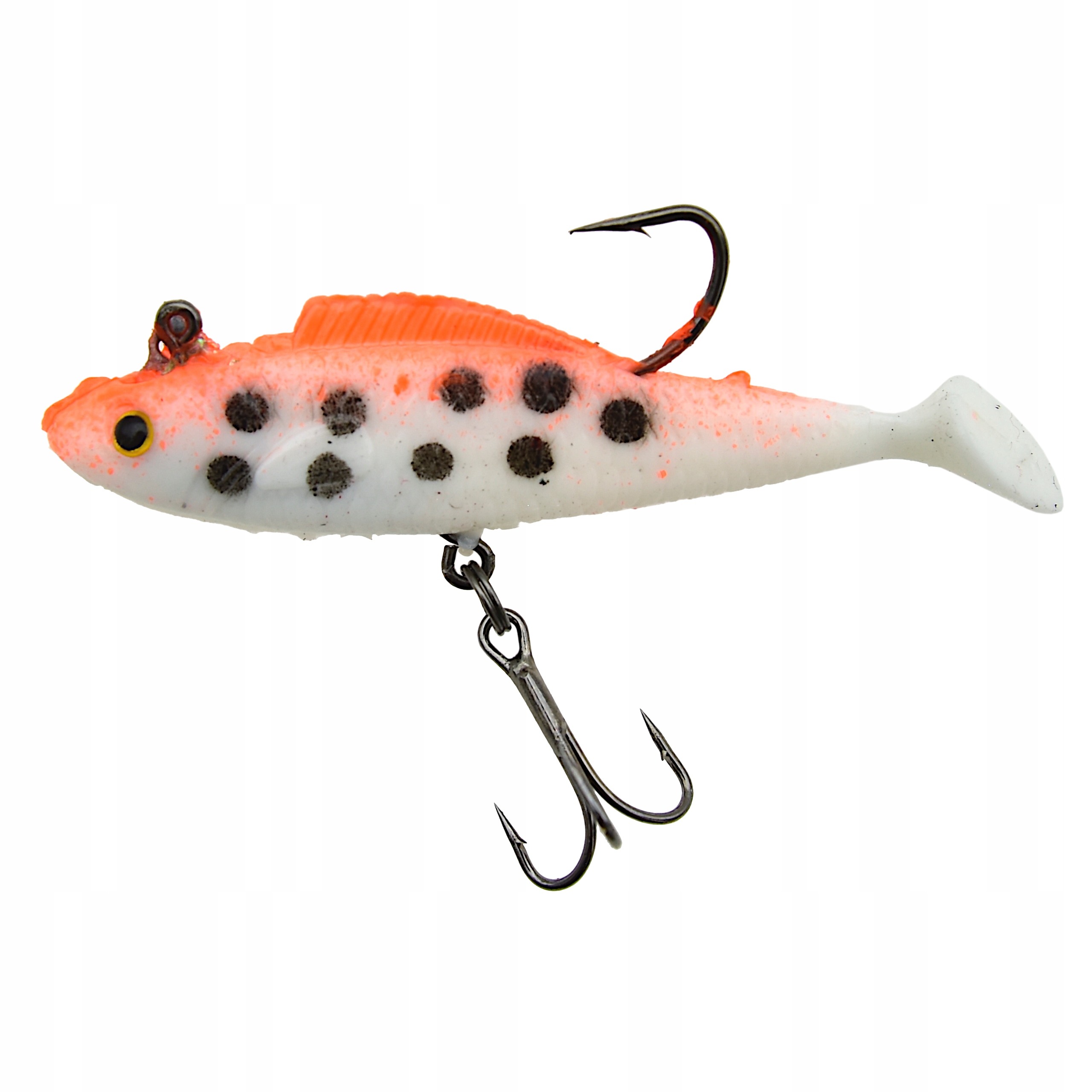 Proponowane przez nas przynęty posiadają trójwymiarowe wklejane oczy oraz charakterystycznie uformowaną płetwę ogonową w stylu kopyta - co sprawia, że uzyskuje ona odpowiedni ruch w wodzie nawet przy najdelikatniejszym obrocie kołowrotka. Dodatkowo gumy uzbrojone są w główkę jigową i kotwiczkę oraz posiadają własne obciążenie. Przynęty tego typu sprawdzają się zarówno w jeziorze, na morzu jak i rzece o silniejszym nurcie. Perfekcyjnie dobrana kolorystyka, agresywna praca, to tylko niektóre z atutów tej przynęty.