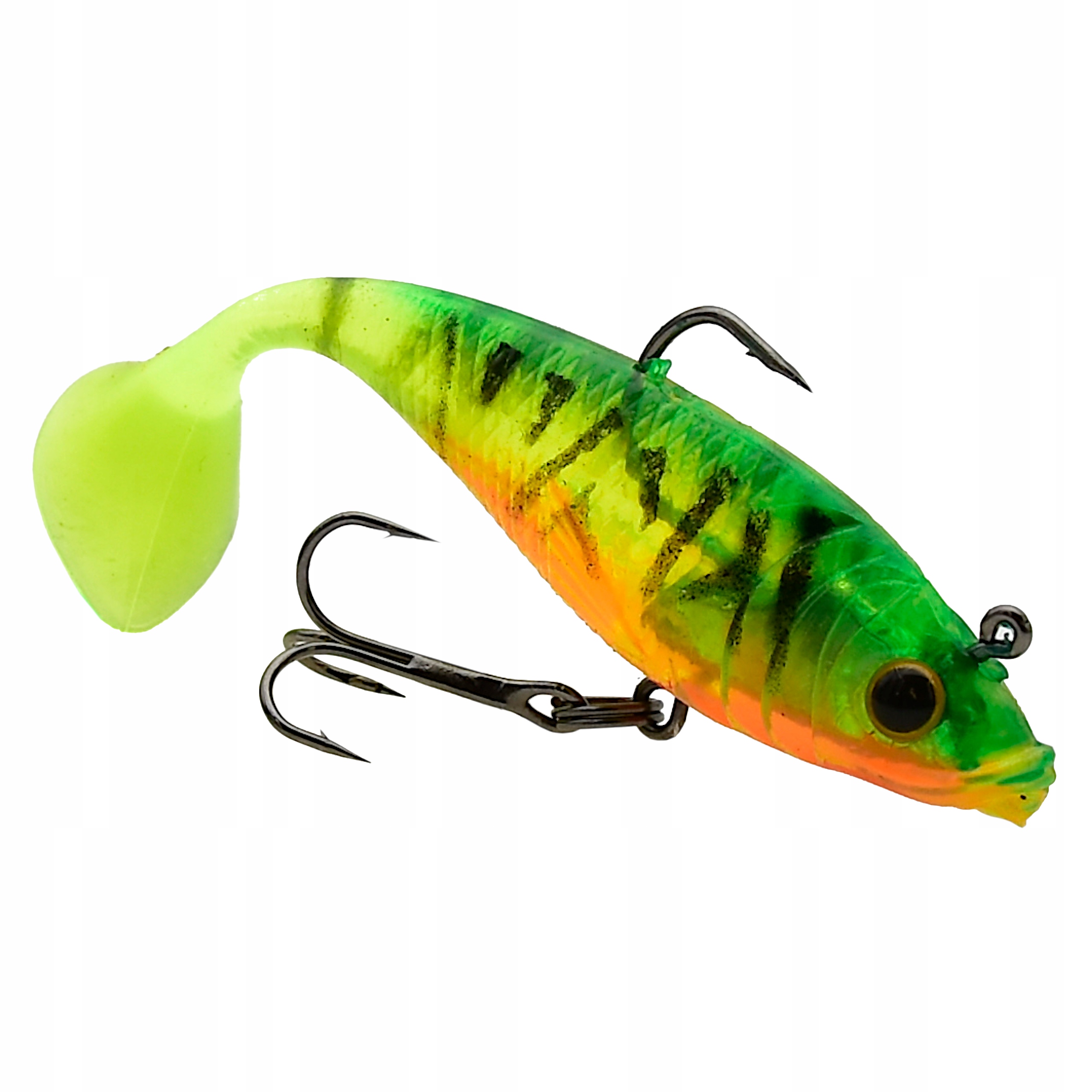 Proponowane przez nas przynęty posiadają trójwymiarowe wklejane oczy oraz charakterystycznie uformowaną płetwę ogonową w stylu kopyta - co sprawia, że uzyskuje ona odpowiedni ruch w wodzie nawet przy najdelikatniejszym obrocie kołowrotka. Dodatkowo gumy uzbrojone są w główkę jigową i kotwiczkę oraz posiadają własne obciążenie. Przynęty tego typu sprawdzają się zarówno w jeziorze, na morzu jak i rzece o silniejszym nurcie. Perfekcyjnie dobrana kolorystyka, agresywna praca, to tylko niektóre z atutów tej przynęty.