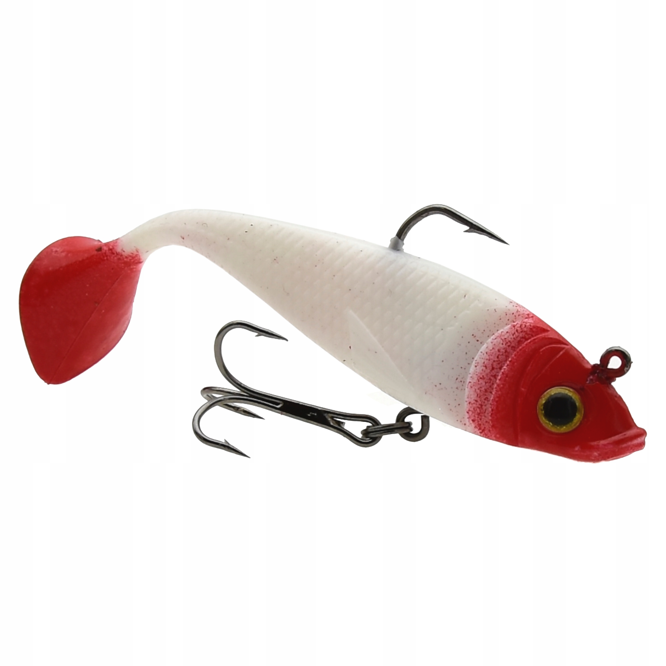 Proponowane przez nas przynęty posiadają trójwymiarowe wklejane oczy oraz charakterystycznie uformowaną płetwę ogonową w stylu kopyta - co sprawia, że uzyskuje ona odpowiedni ruch w wodzie nawet przy najdelikatniejszym obrocie kołowrotka. Dodatkowo gumy uzbrojone są w główkę jigową i kotwiczkę oraz posiadają własne obciążenie. Przynęty tego typu sprawdzają się zarówno w jeziorze, na morzu jak i rzece o silniejszym nurcie. Perfekcyjnie dobrana kolorystyka, agresywna praca, to tylko niektóre z atutów tej przynęty.