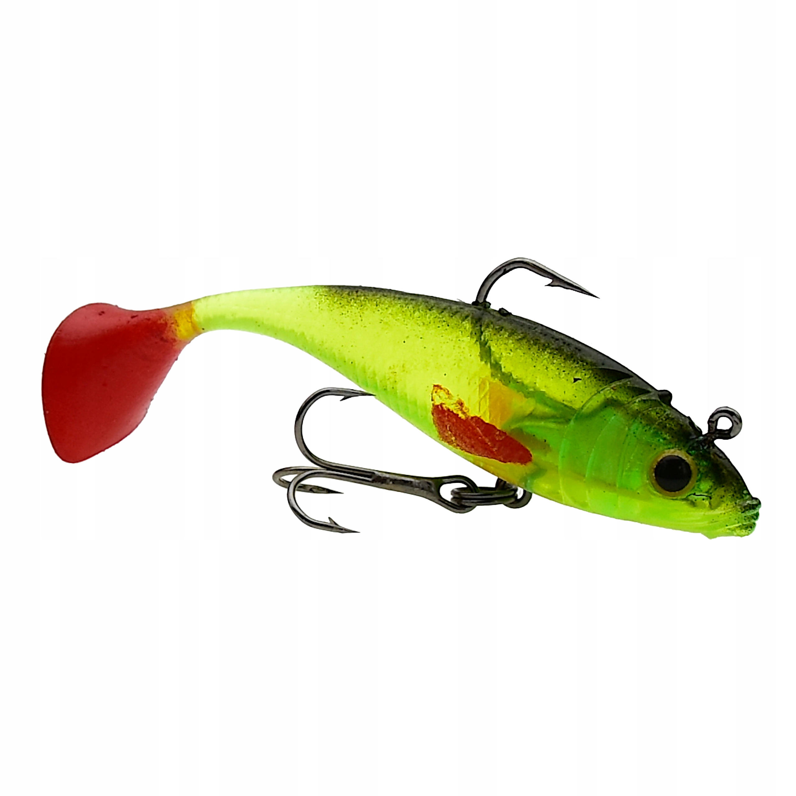 Proponowane przez nas przynęty posiadają trójwymiarowe wklejane oczy oraz charakterystycznie uformowaną płetwę ogonową w stylu kopyta - co sprawia, że uzyskuje ona odpowiedni ruch w wodzie nawet przy najdelikatniejszym obrocie kołowrotka. Dodatkowo gumy uzbrojone są w główkę jigową i kotwiczkę oraz posiadają własne obciążenie. Przynęty tego typu sprawdzają się zarówno w jeziorze, na morzu jak i rzece o silniejszym nurcie. Perfekcyjnie dobrana kolorystyka, agresywna praca, to tylko niektóre z atutów tej przynęty.