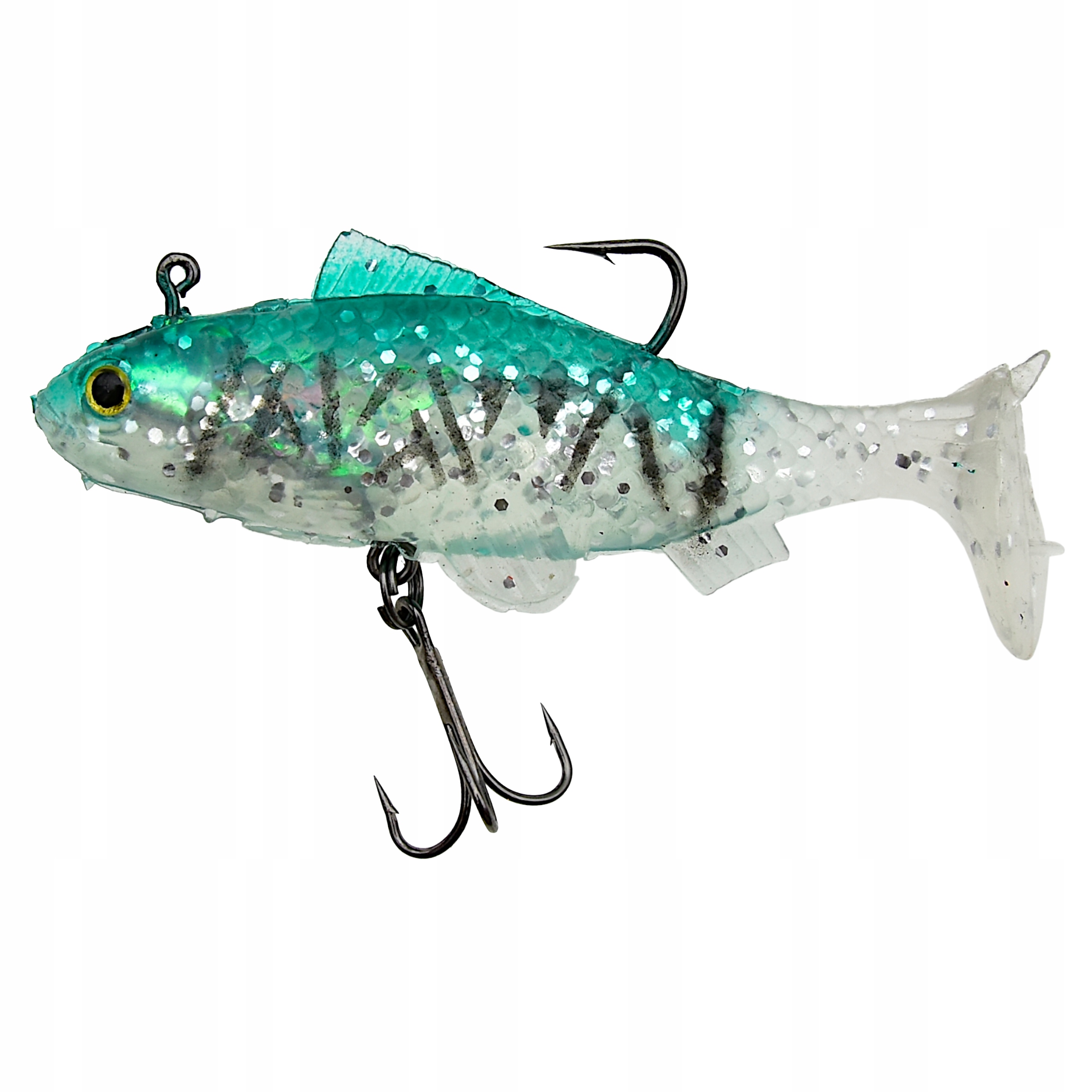 Proponowane przez nas przynęty posiadają trójwymiarowe wklejane oczy oraz charakterystycznie uformowaną płetwę ogonową w stylu kopyta - co sprawia, że uzyskuje ona odpowiedni ruch w wodzie nawet przy najdelikatniejszym obrocie kołowrotka. Dodatkowo gumy uzbrojone są w główkę jigową i kotwiczkę oraz posiadają własne obciążenie. Przynęty tego typu sprawdzają się zarówno w jeziorze, na morzu jak i rzece o silniejszym nurcie. Perfekcyjnie dobrana kolorystyka, agresywna praca, to tylko niektóre z atutów tej przynęty.