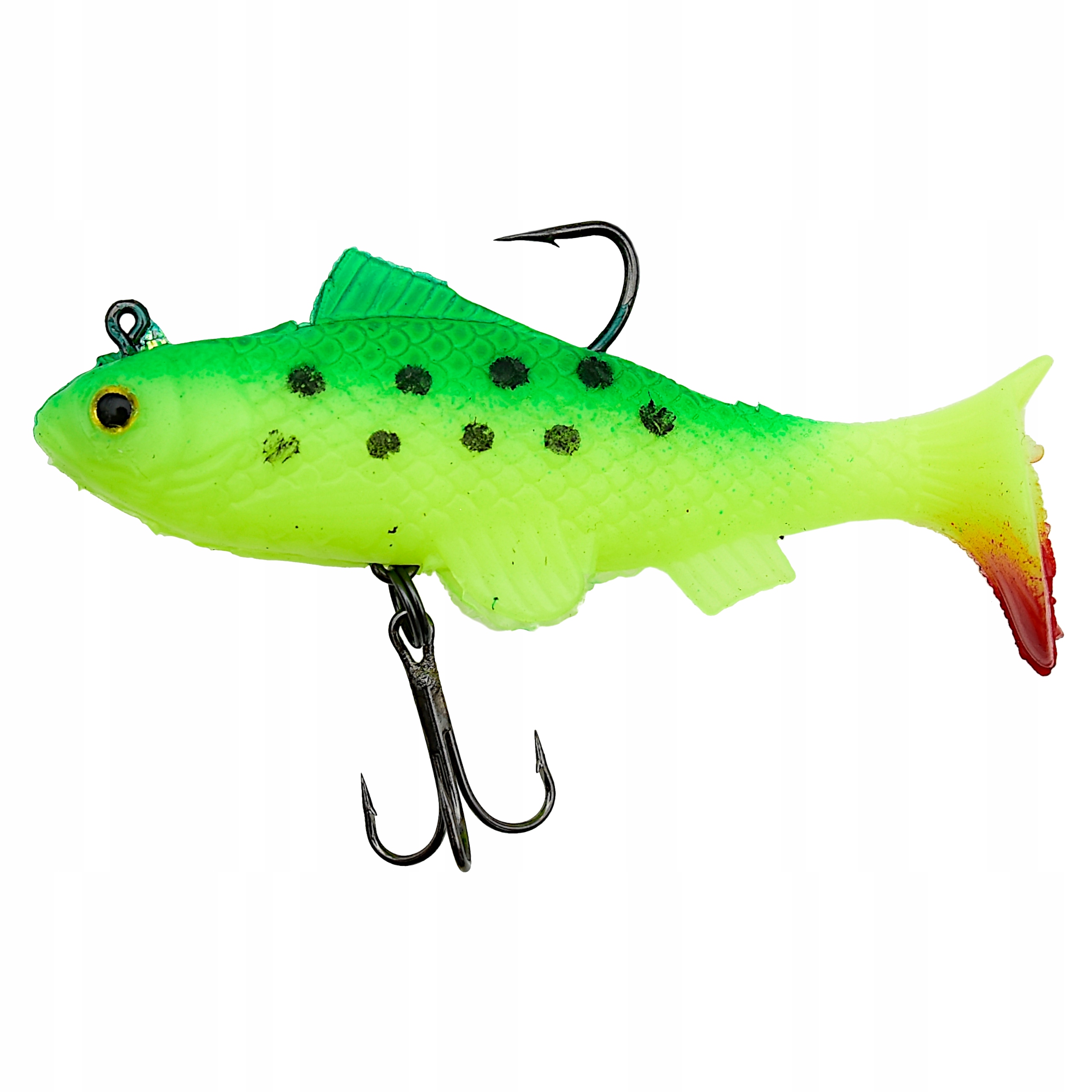 Proponowane przez nas przynęty posiadają trójwymiarowe wklejane oczy oraz charakterystycznie uformowaną płetwę ogonową w stylu kopyta - co sprawia, że uzyskuje ona odpowiedni ruch w wodzie nawet przy najdelikatniejszym obrocie kołowrotka. Dodatkowo gumy uzbrojone są w główkę jigową i kotwiczkę oraz posiadają własne obciążenie. Przynęty tego typu sprawdzają się zarówno w jeziorze, na morzu jak i rzece o silniejszym nurcie. Perfekcyjnie dobrana kolorystyka, agresywna praca, to tylko niektóre z atutów tej przynęty.