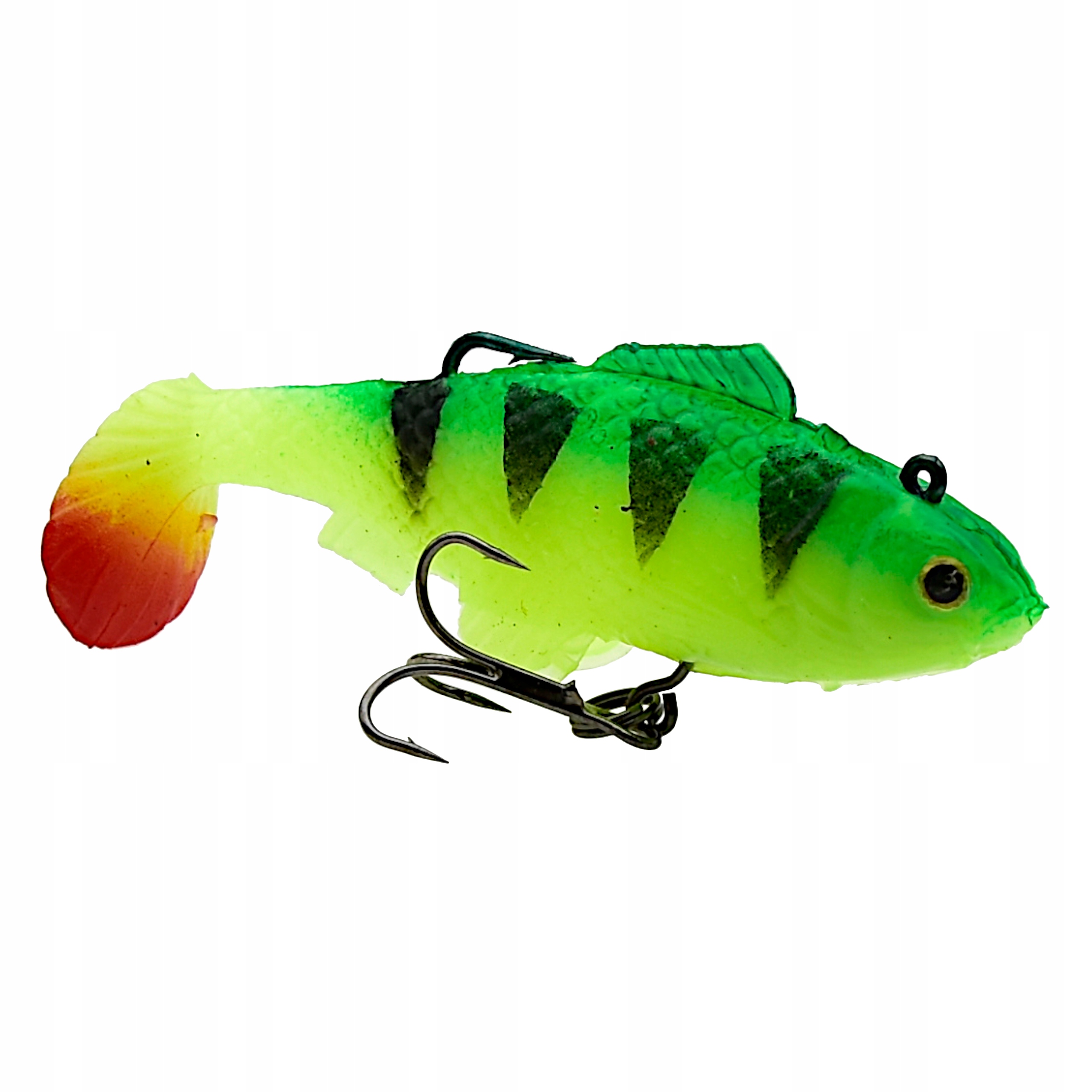 Proponowane przez nas przynęty posiadają trójwymiarowe wklejane oczy oraz charakterystycznie uformowaną płetwę ogonową w stylu kopyta - co sprawia, że uzyskuje ona odpowiedni ruch w wodzie nawet przy najdelikatniejszym obrocie kołowrotka. Dodatkowo gumy uzbrojone są w główkę jigową i kotwiczkę oraz posiadają własne obciążenie. Przynęty tego typu sprawdzają się zarówno w jeziorze, na morzu jak i rzece o silniejszym nurcie. Perfekcyjnie dobrana kolorystyka, agresywna praca, to tylko niektóre z atutów tej przynęty.