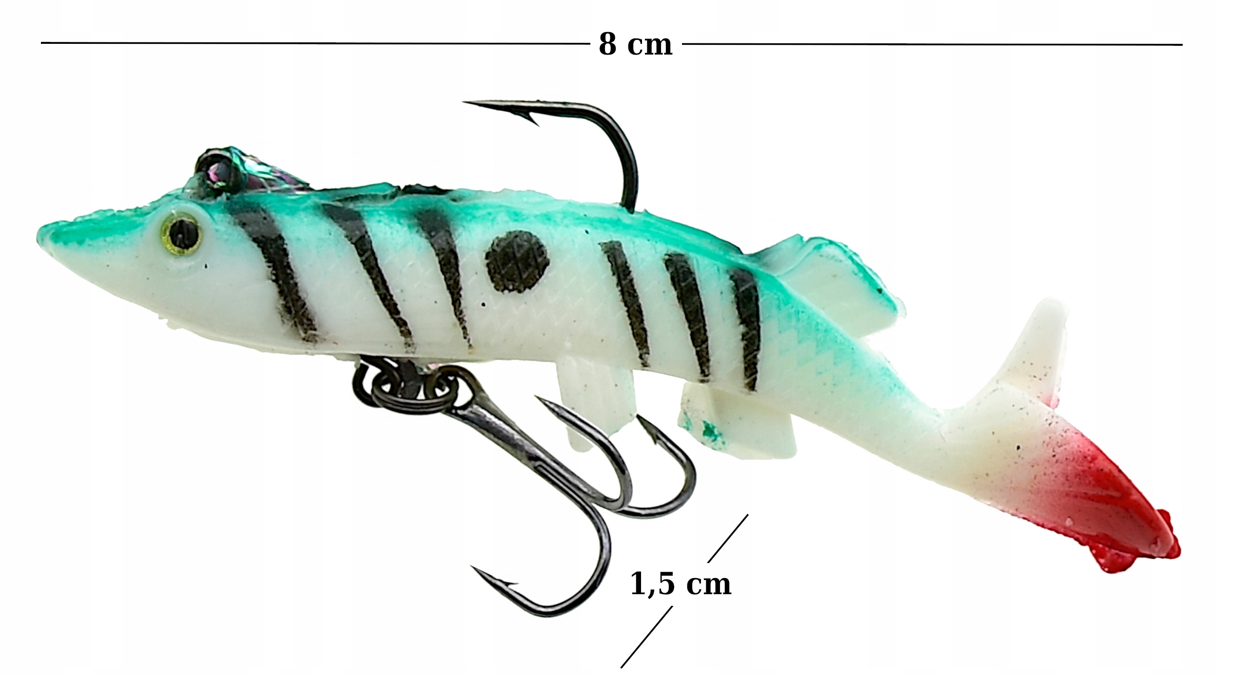 Proponowane przez nas przynęty posiadają trójwymiarowe wklejane oczy oraz charakterystycznie uformowaną płetwę ogonową w stylu kopyta z masywnym ogonem - co sprawia, że uzyskuje ona odpowiedni ruch w wodzie nawet przy najdelikatniejszym obrocie kołowrotka. Dodatkowo gumy uzbrojone są w hak i kotwiczkę oraz posiadają własne obciążenie. Przynęty tego typu sprawdzają się zarówno w jeziorze, na morzu jak i rzece o silniejszym nurcie. Perfekcyjnie dobrana kolorystyka, agresywna praca, to tylko niektóre z atutów tej przynęty.