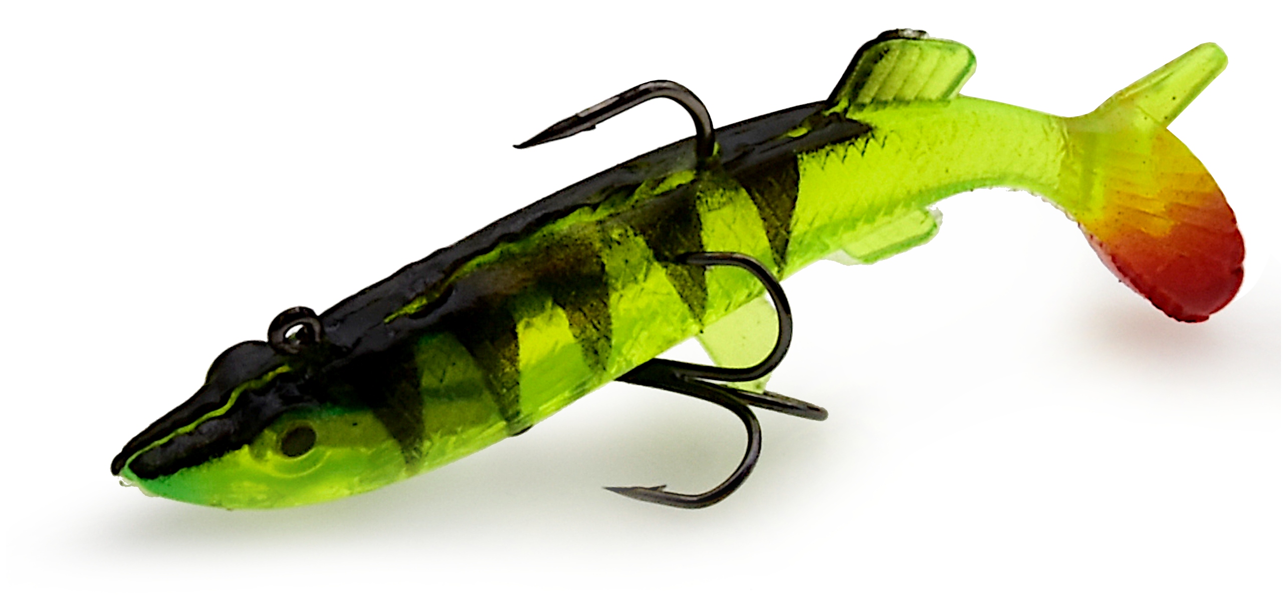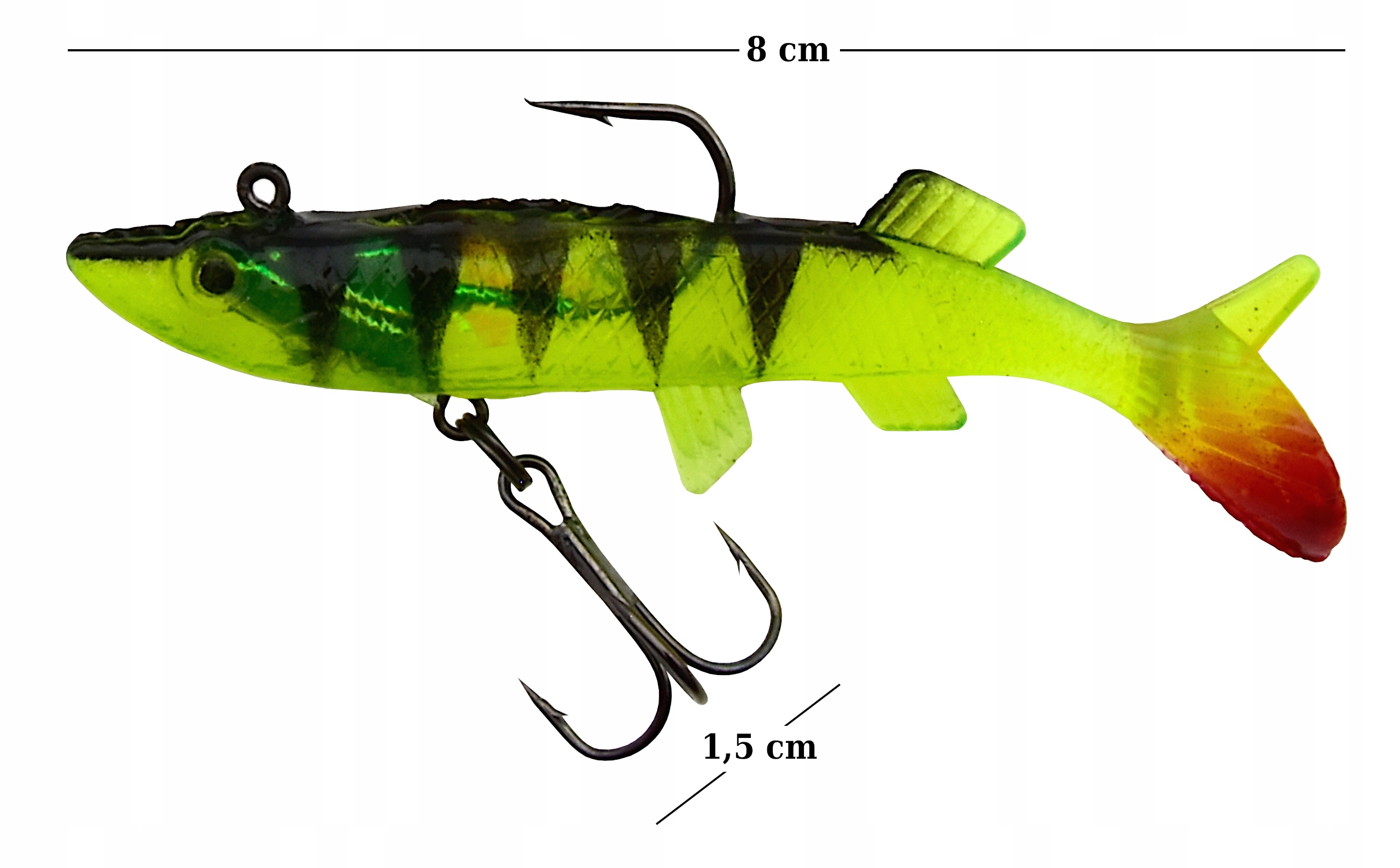 Proponowane przez nas przynęty posiadają trójwymiarowe wklejane oczy oraz charakterystycznie uformowaną płetwę ogonową w stylu kopyta z masywnym ogonem - co sprawia, że uzyskuje ona odpowiedni ruch w wodzie nawet przy najdelikatniejszym obrocie kołowrotka. Dodatkowo gumy uzbrojone są w hak i kotwiczkę oraz posiadają własne obciążenie. Przynęty tego typu sprawdzają się zarówno w jeziorze, na morzu jak i rzece o silniejszym nurcie. Perfekcyjnie dobrana kolorystyka, agresywna praca, to tylko niektóre z atutów tej przynęty.