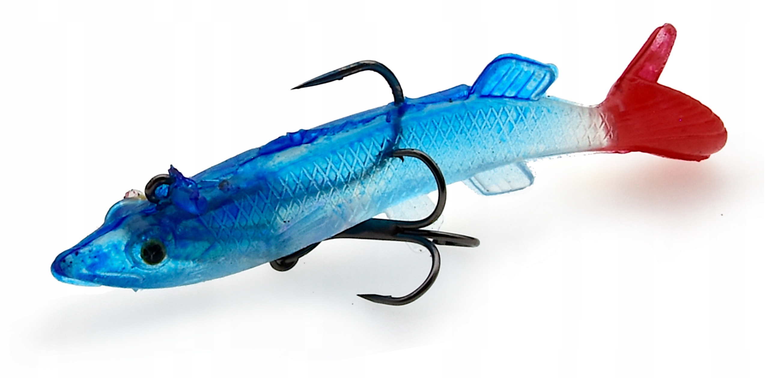Proponowane przez nas przynęty posiadają trójwymiarowe wklejane oczy oraz charakterystycznie uformowaną płetwę ogonową w stylu kopyta z masywnym ogonem - co sprawia, że uzyskuje ona odpowiedni ruch w wodzie nawet przy najdelikatniejszym obrocie kołowrotka. Dodatkowo gumy uzbrojone są w hak i kotwiczkę oraz posiadają własne obciążenie. Przynęty tego typu sprawdzają się zarówno w jeziorze, na morzu jak i rzece o silniejszym nurcie. Perfekcyjnie dobrana kolorystyka, agresywna praca, to tylko niektóre z atutów tej przynęty.