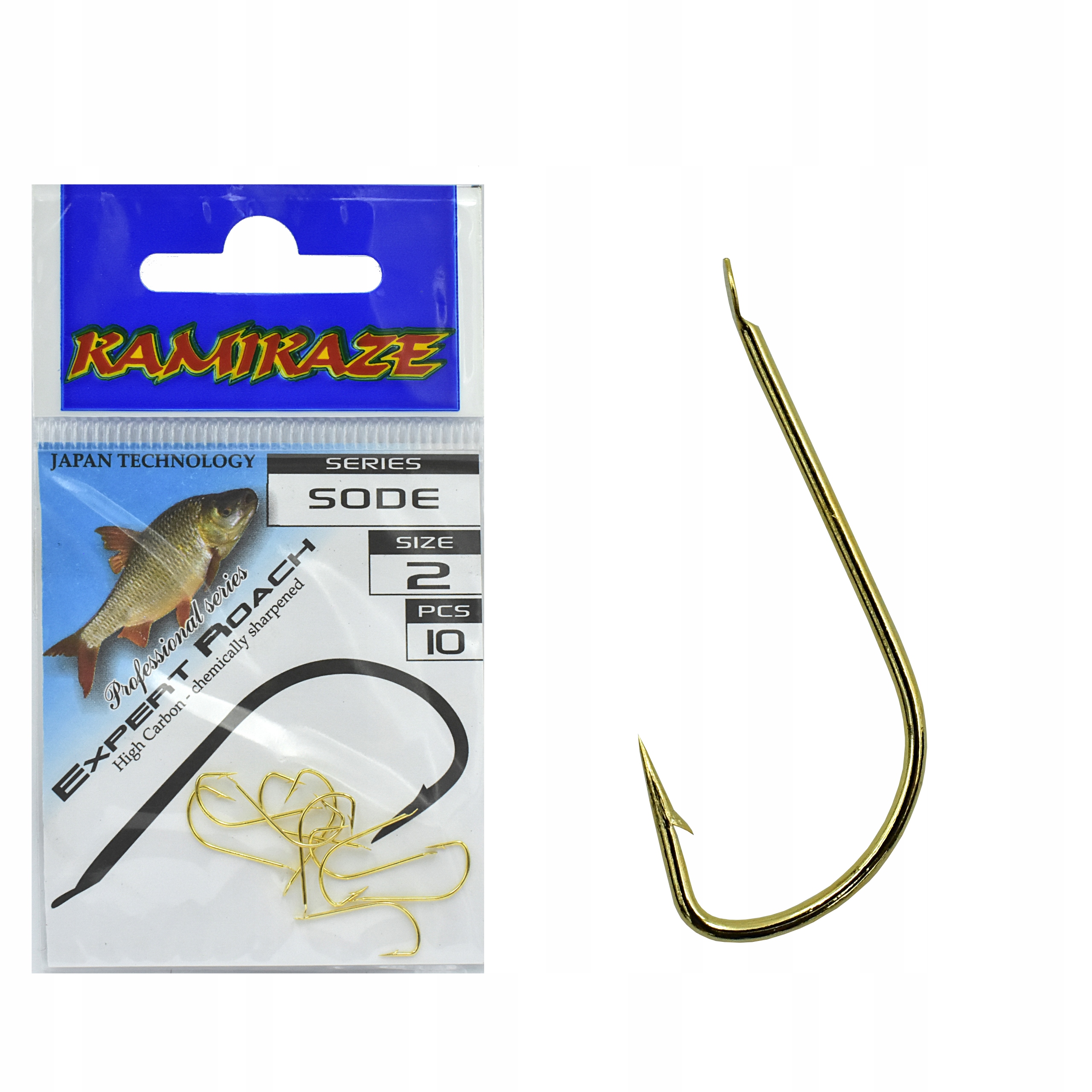 SODE - Profesjonalna seria bardzo mocnych i ostrych haczyków zakończonych łopatką w szerokiej gamie rozmiarów - (inne rozmiary dostępne na pozostałych aukcjach). Dedykowane do zbrojenia białych robaków oraz przynęt roślinnych. Chętnie wybierane przez wędkarzy do wędkowania wyczynowego.