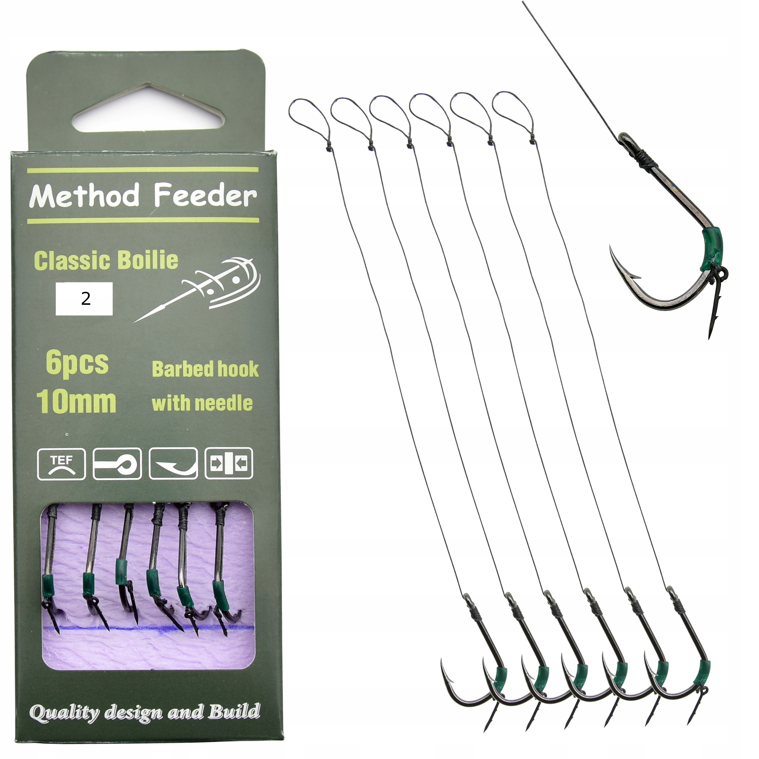 Haczyki Method Feeder na przyponie z igłą # 2 - 6 szt