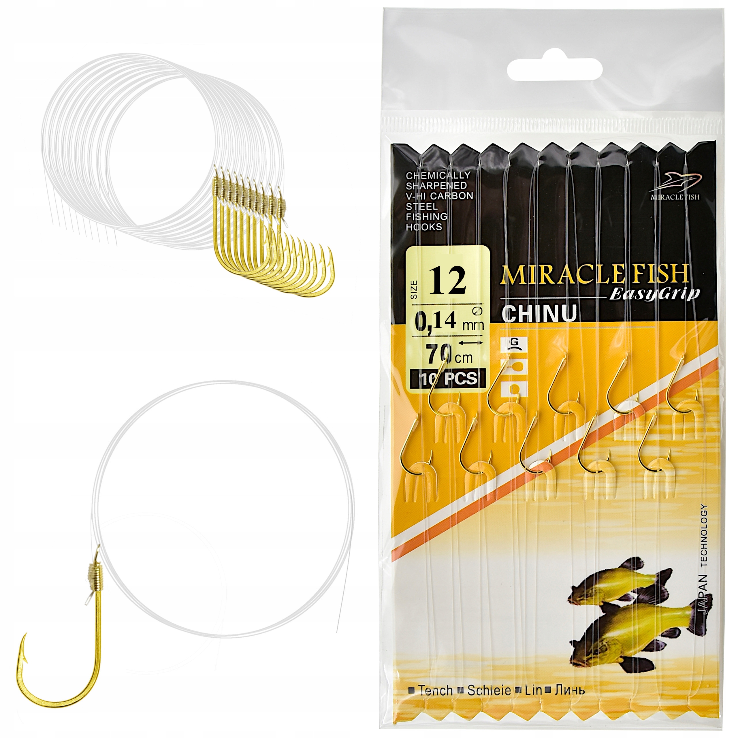 Cena dotyczy kompletu 10-ciu gotowych, wiązanych przyponów z haczykiem CHINU