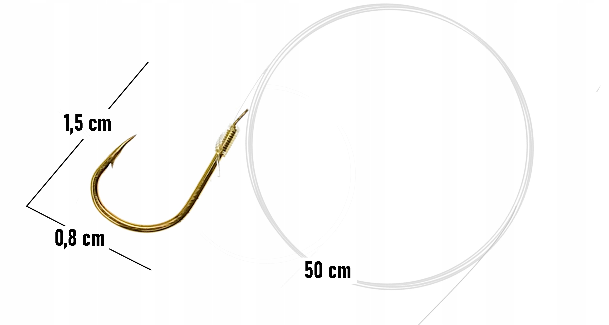 Długość przyponu to ok. 50 cm / 0,20 mm, haczyk rozmiar 4