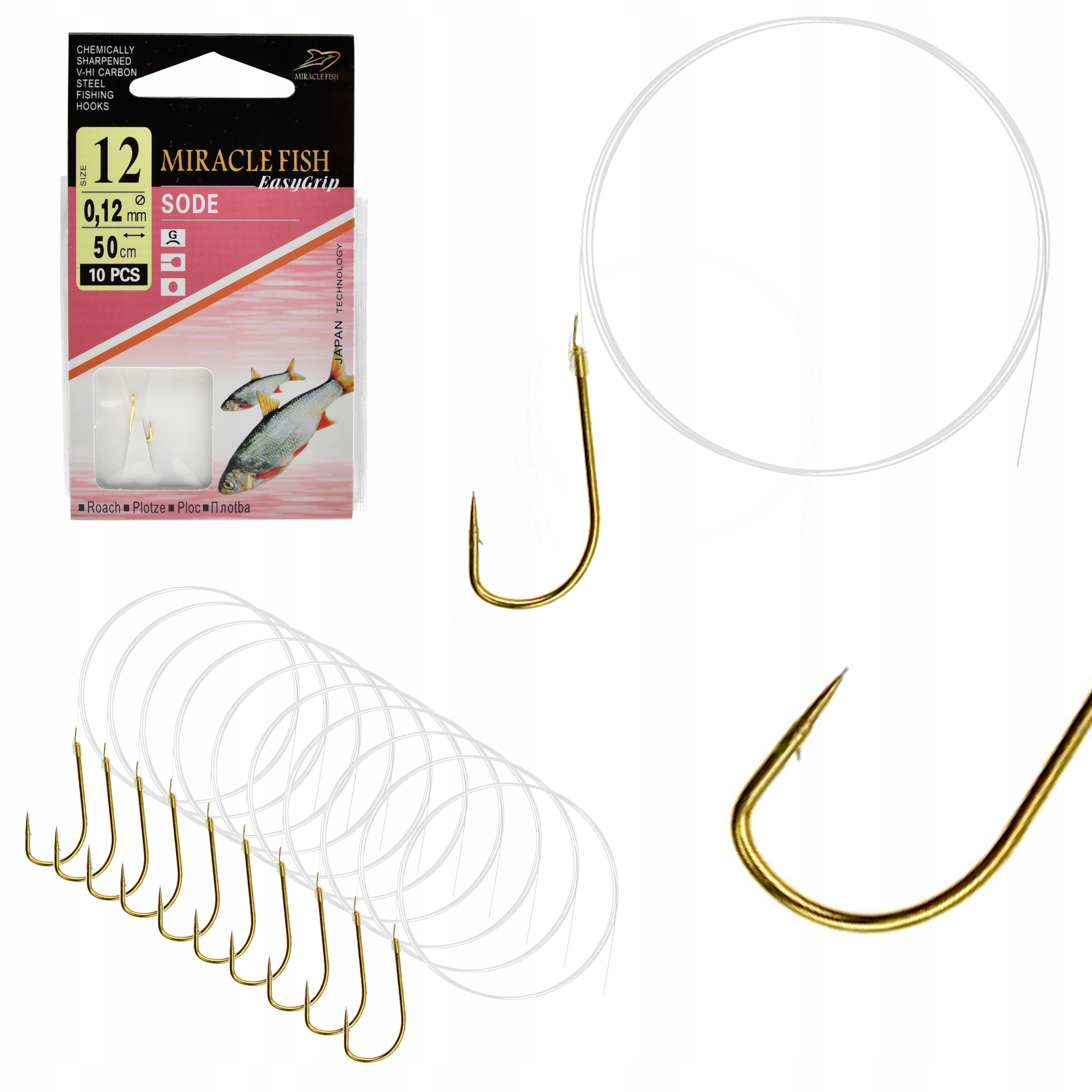 Haczyki WIĄZANE SODE Przypony GOTOWE 10 SZT r 12