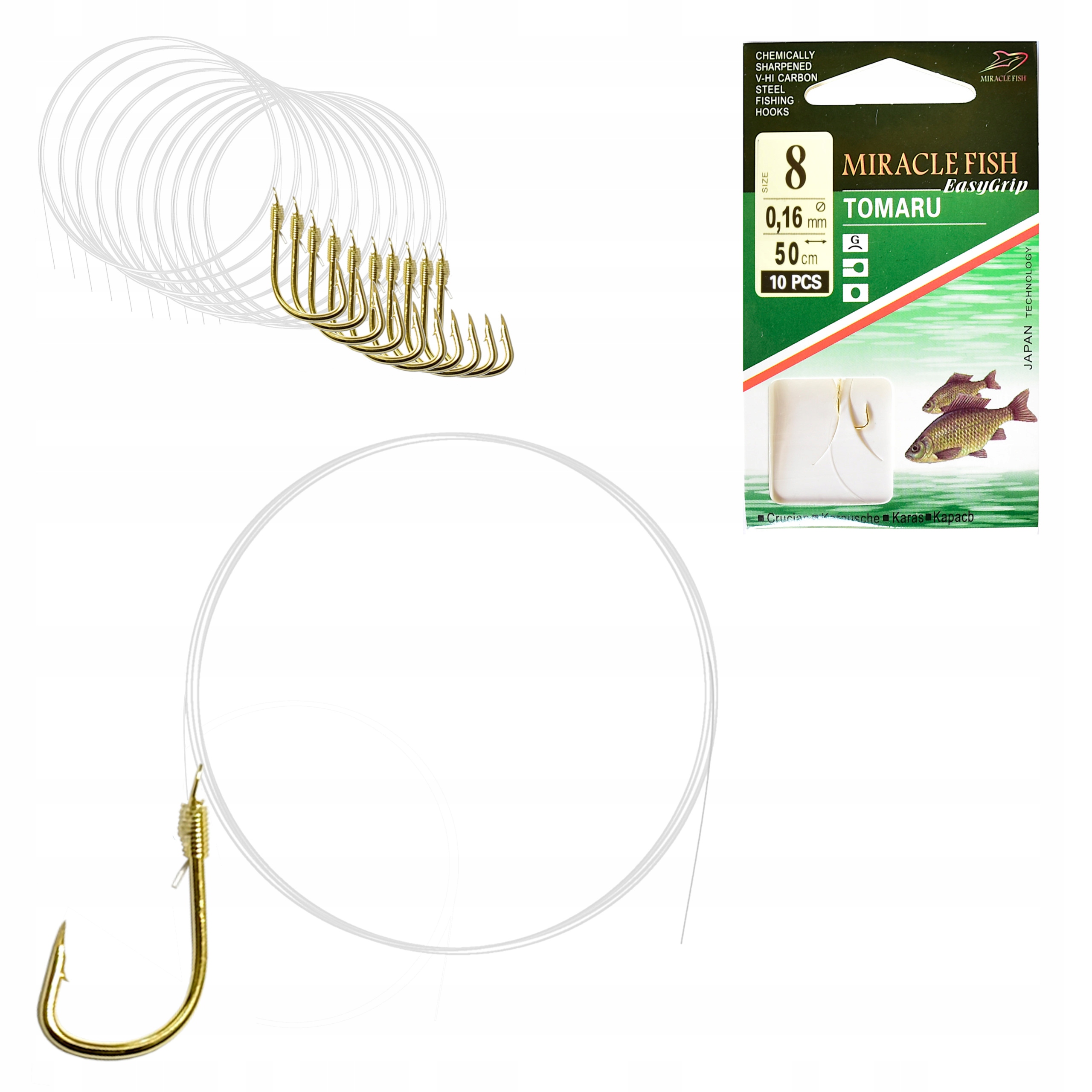 Haczyki WIĄZANE TOMARU Przypony GOTOWE 10 SZT r 8