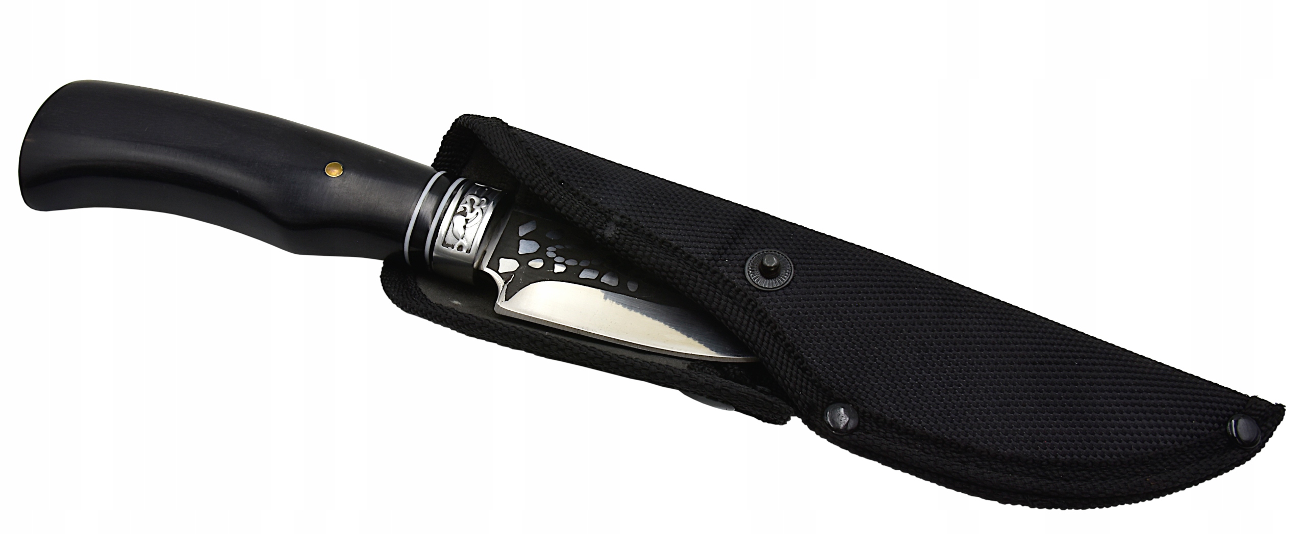 W zestawie otrzymamy piękny nóż oraz pochwę, która jest starannie dopasowana do noża i dodatkowo zapinana dwoma rzepami co uniemożliwia przypadkowe wysunięcie się z niej noża. Pochwa dodatkowo posiada szlufkę, dzięki której możemy zamocować ją przy pasku.