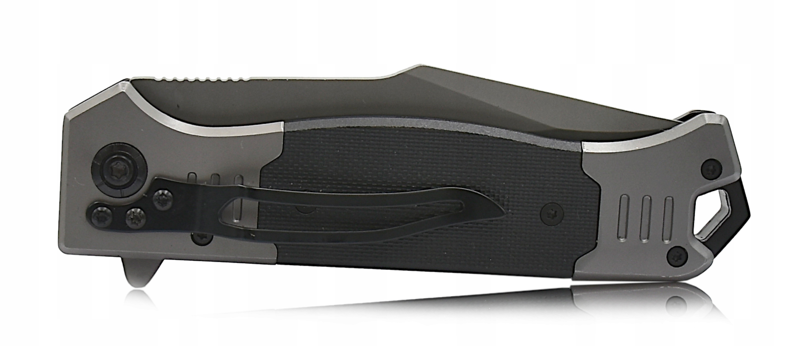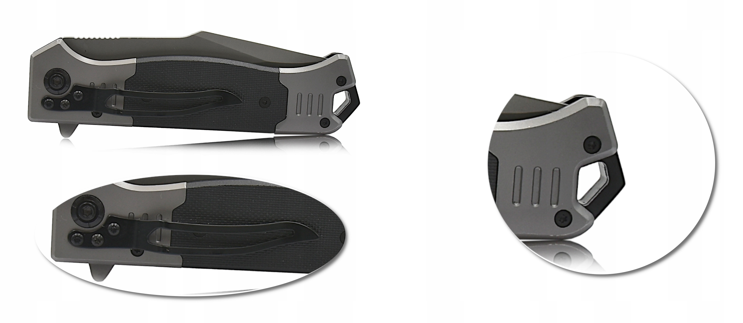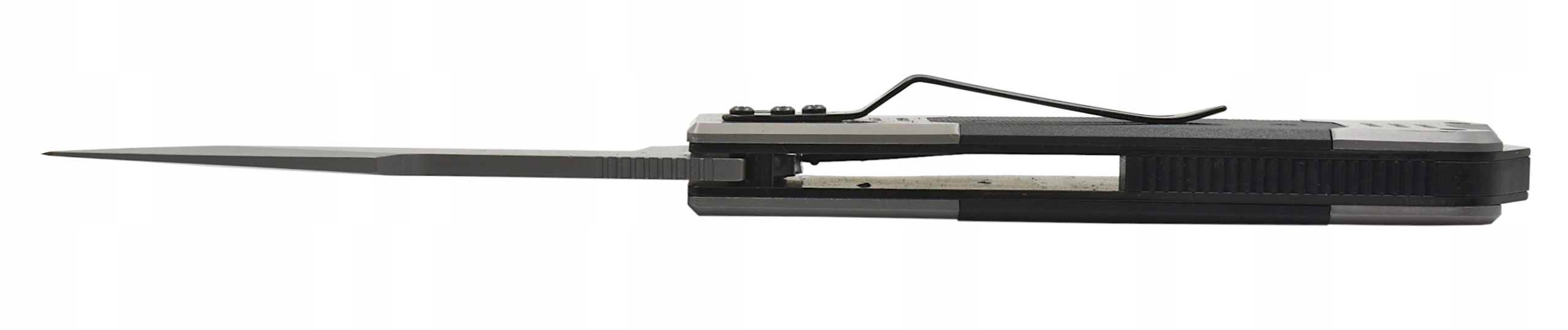 Nóż posiada sprężysty, stalowy klips umożliwiający zaczepienie noża o pasek spodni lub inną część garderoby