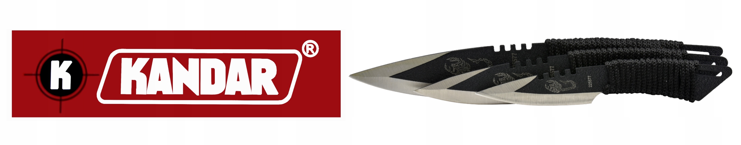Kandar N-115 to zestaw trzech noży wykonanych z wysokiej jakości stali nierdzewnej, specjalnie zaprojektowanych do rzucania.