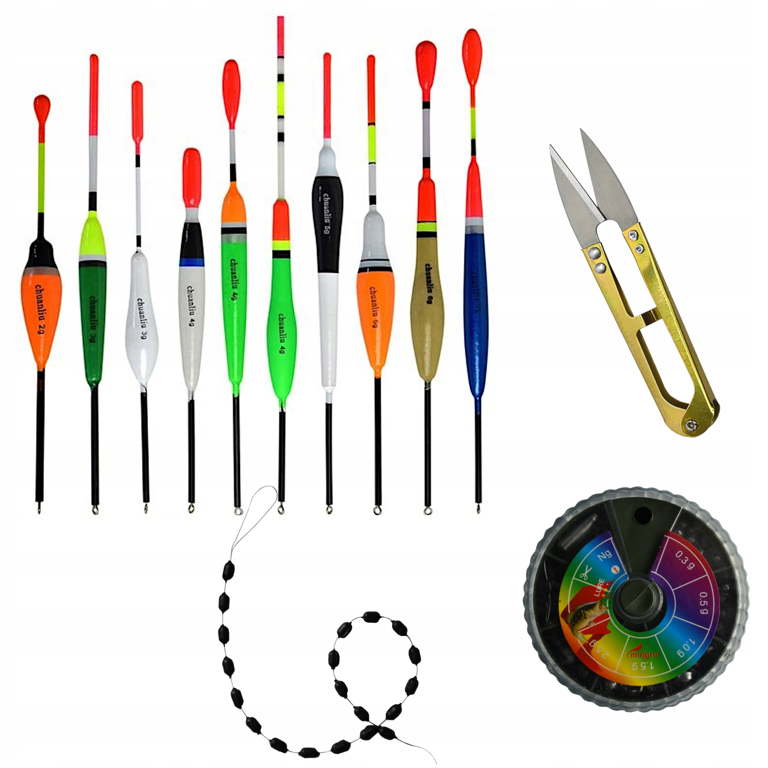 ✅ 10 sztuk spławików przelotowych - różne gramatury, świetne na różne warunki i metody połowu. Idealne do połowów spławikowych w jeziorach, rzekach czy stawach.