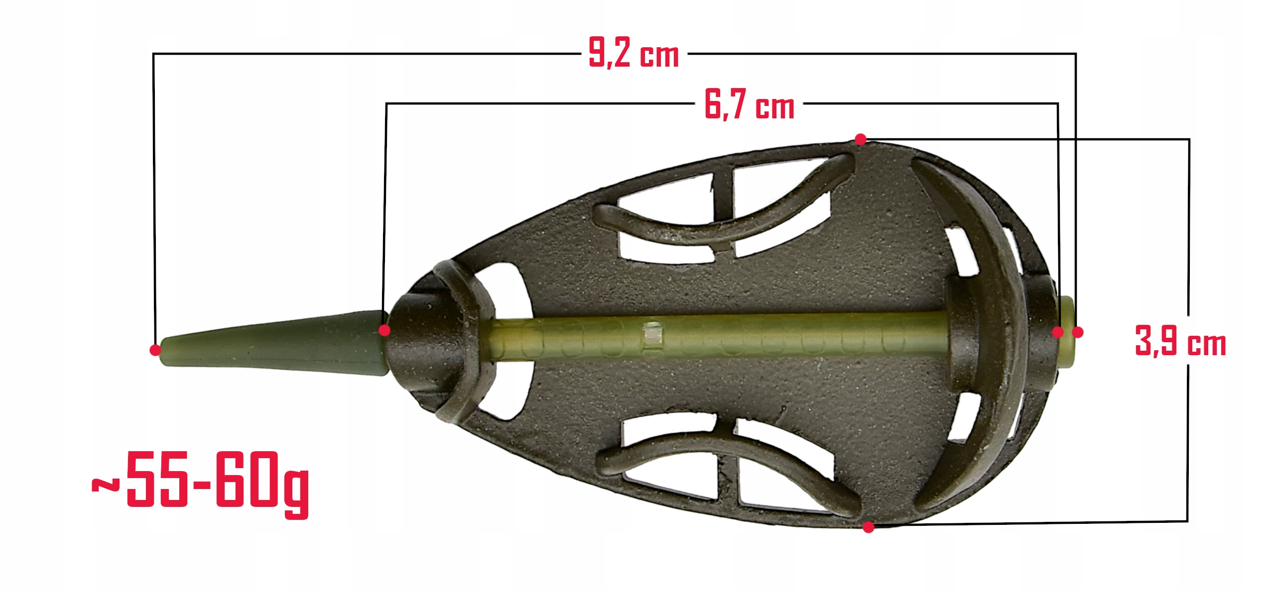 - Otwarta konstrukcja – umożliwia łatwe formowanie zanęty i jej szybkie uwalnianie