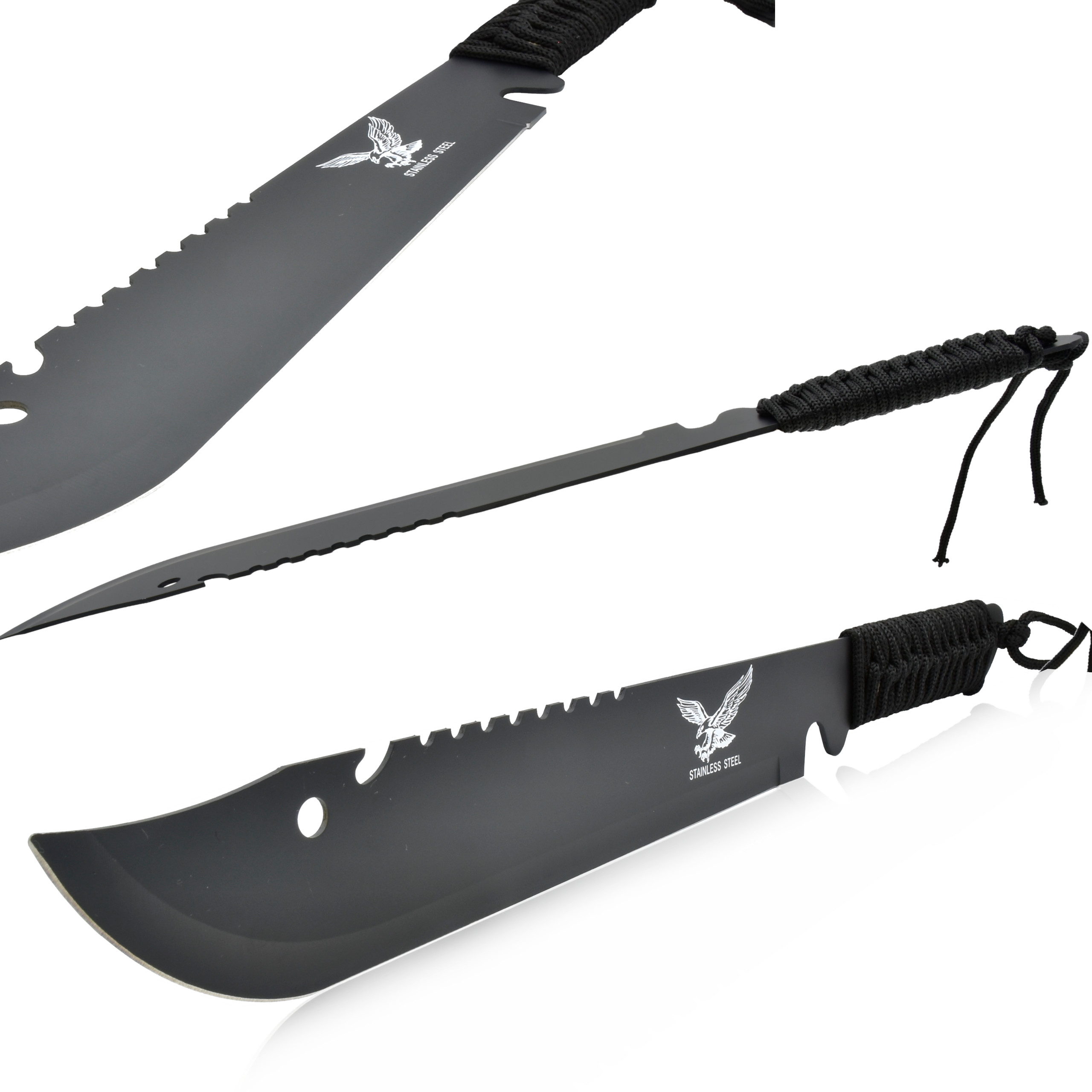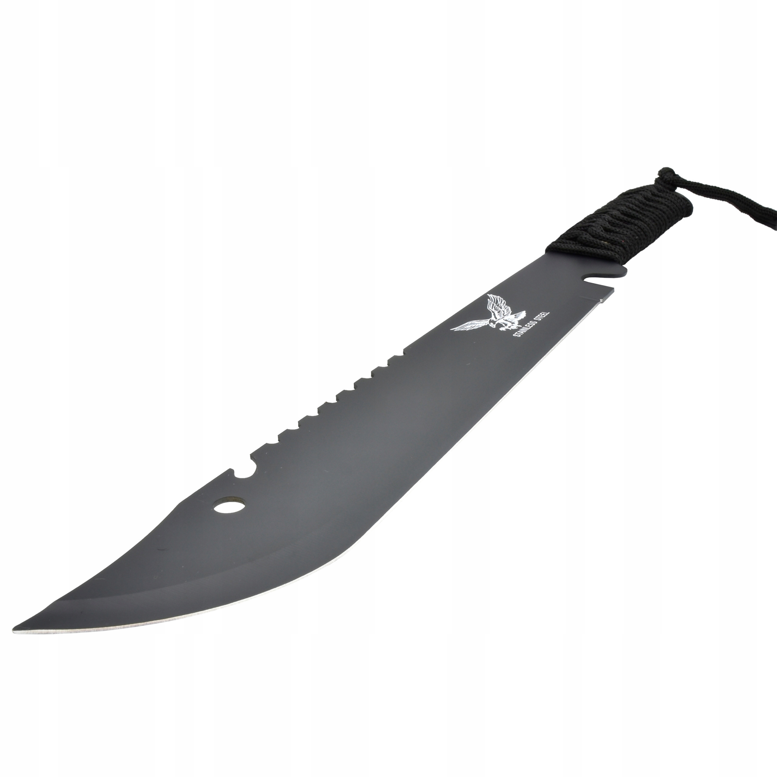 Głownia pokryta czarną, matową powłoką epoksydową o właściwościach antykorozyjnych oraz skutecznie eliminującą wszelkiego pochodzenia odblaski i refleksy świetlne - rękojeść opleciona sznurkiem, otwór umożliwiający przewleczenie linki zabezpieczającej przed przypadkowym wypadnięciem maczety z dłoni - to nie wszystkie atuty maczety - o reszcie przekonasz się sam!