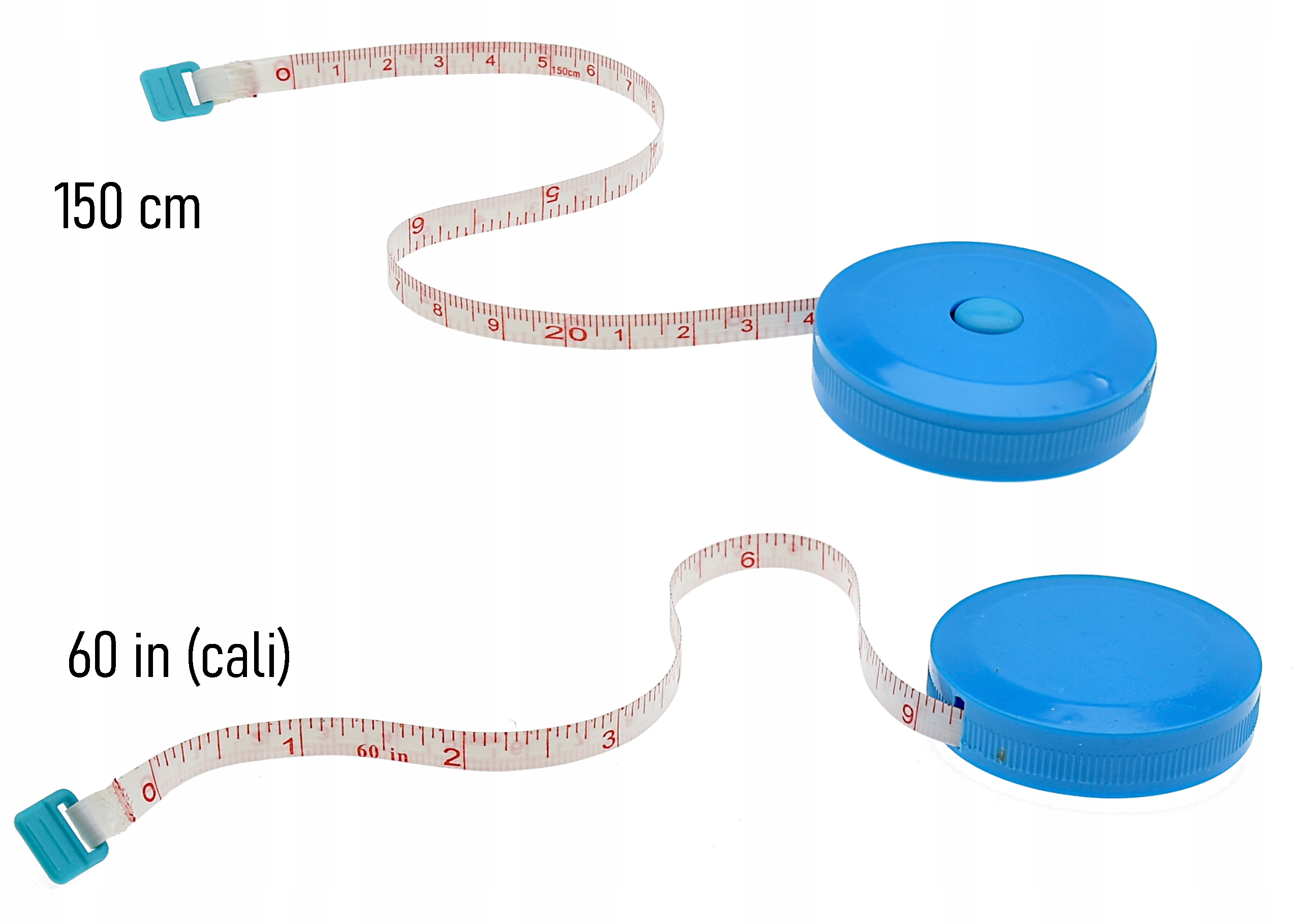 - miara jest dwustronna z jednej strony centymetry (cm) z drugiej cale (in)