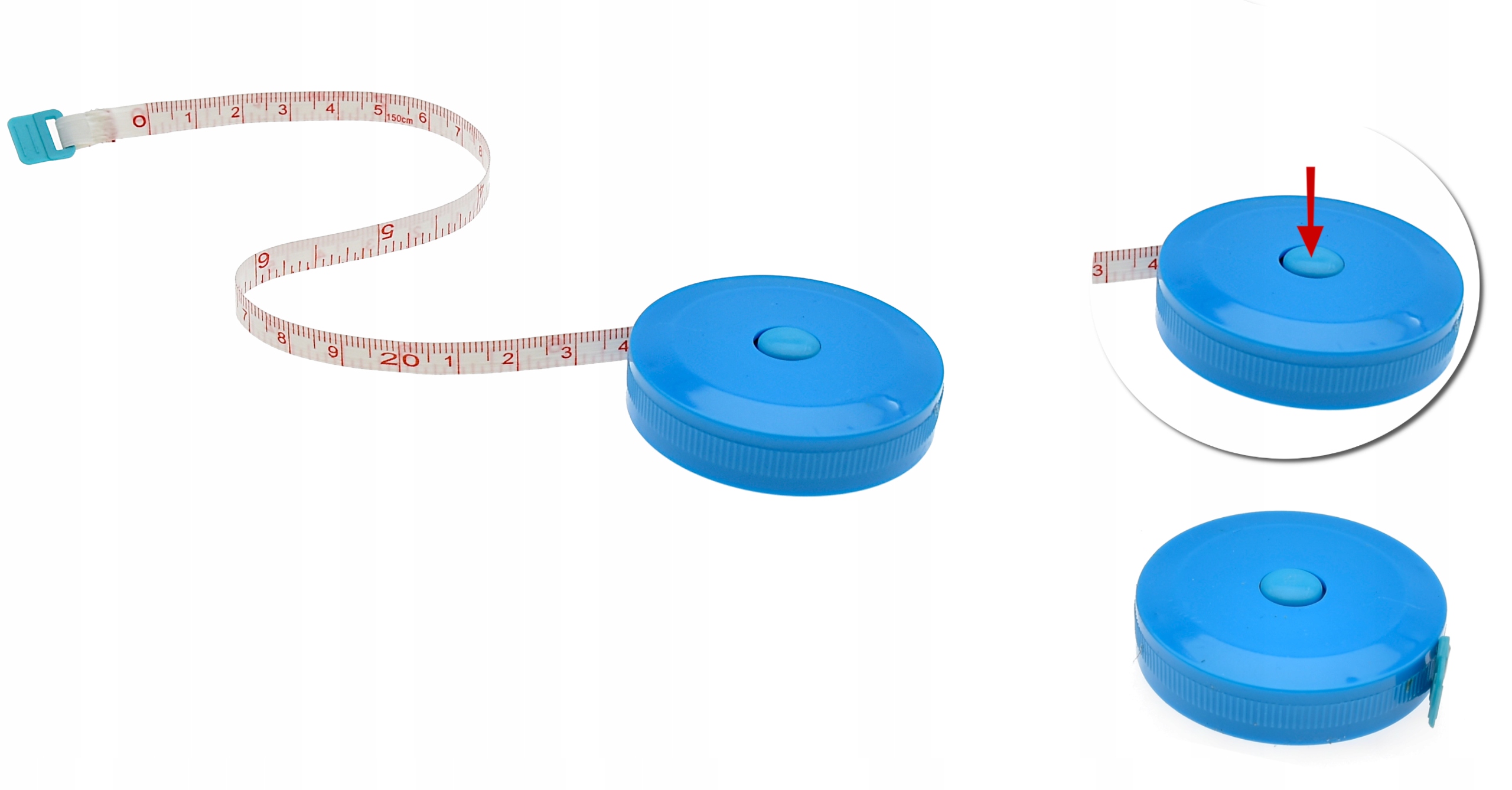 Niewielkich rozmiarów miarka - zwijana automatycznie po naciśnięciu przycisku.