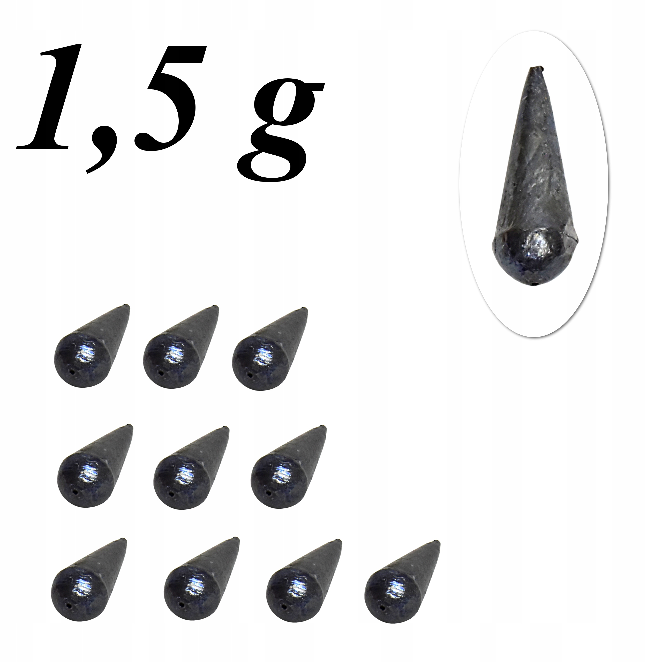 Ołów CIĘŻAREK ŁEZKA SMUKŁA PRZELOTOWA 1,5 g x10szt