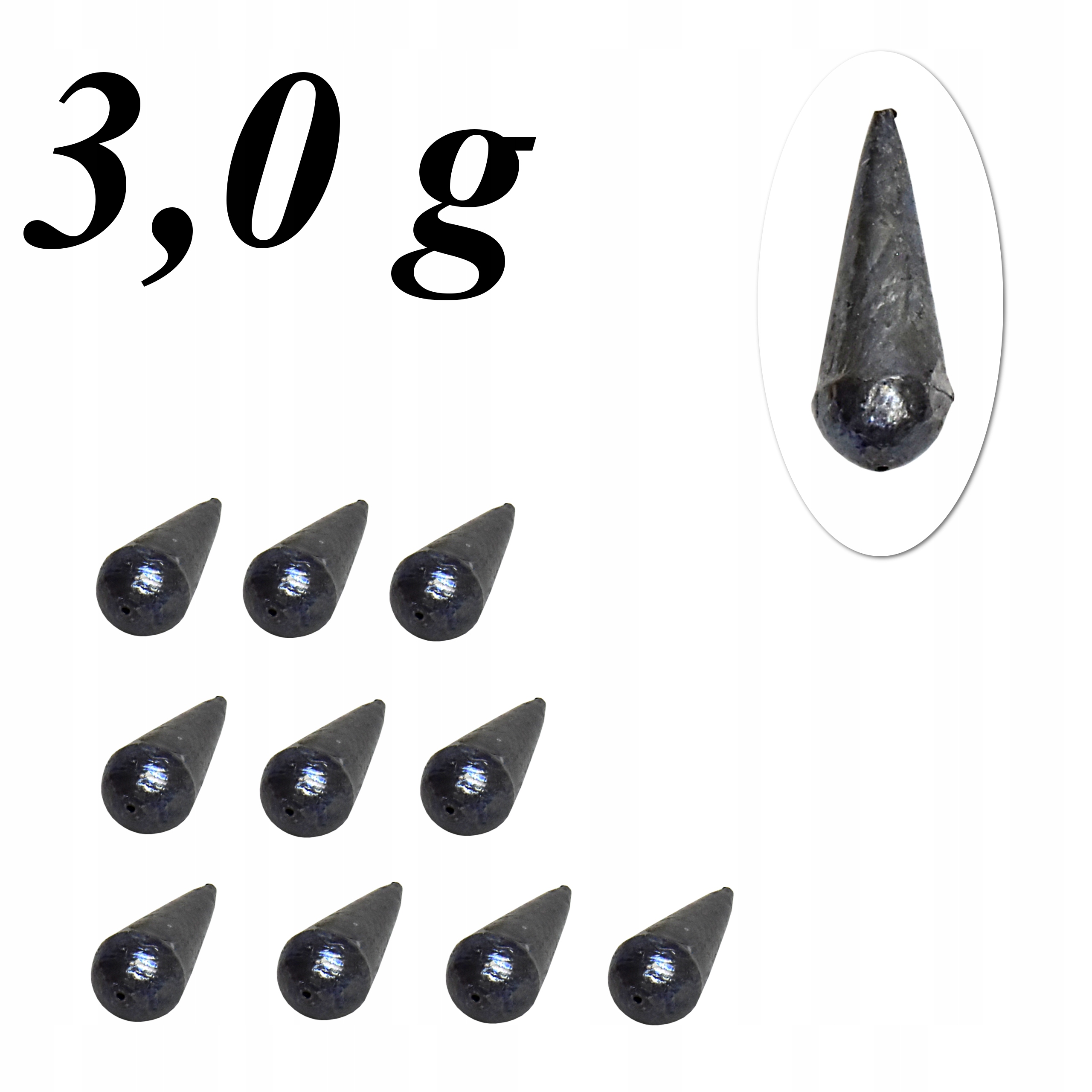 Ołów CIĘŻAREK ŁEZKA SMUKŁA PRZELOTOWA 3,0 g x10szt