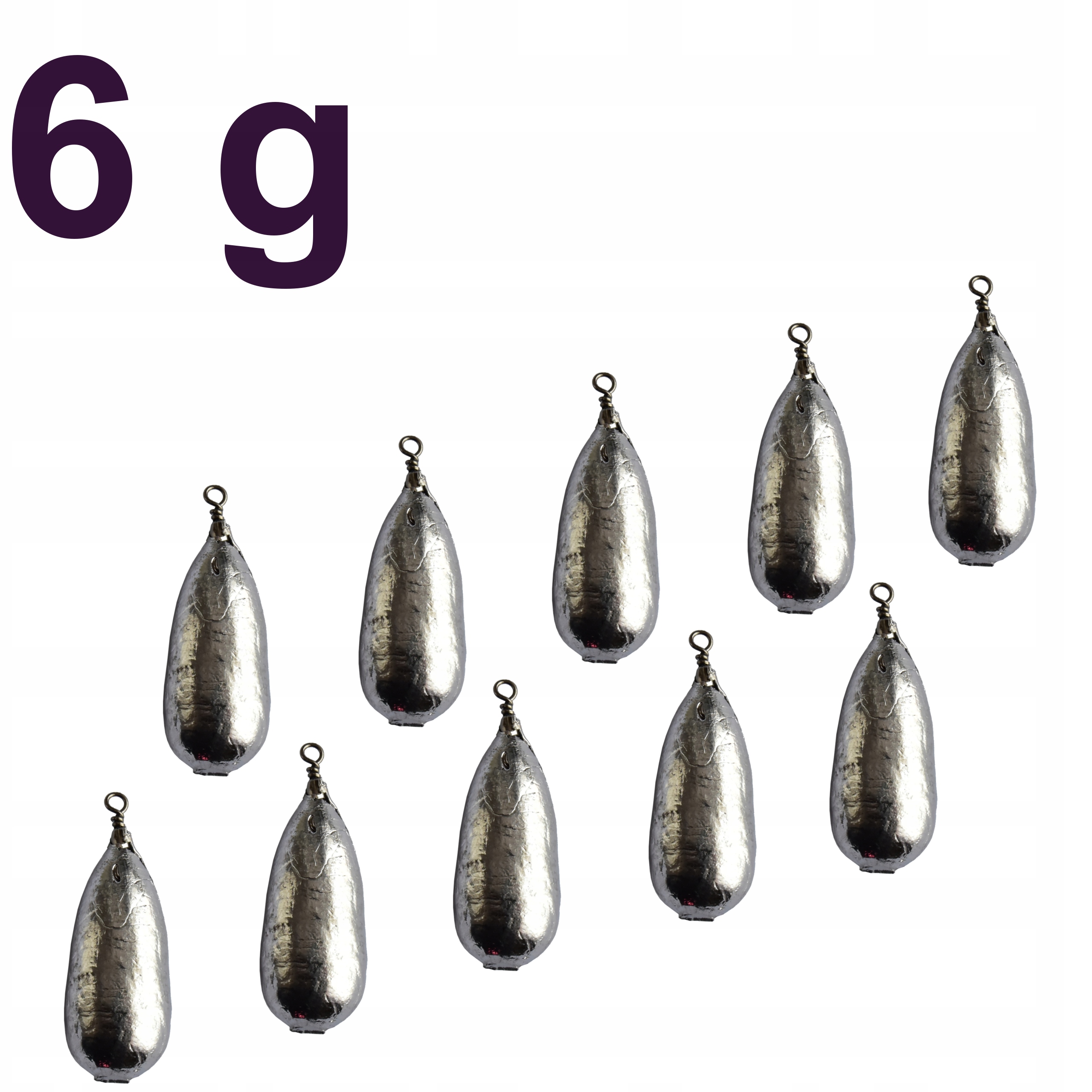 Ciężarki w kształcie łezki, stosowane w spiningu do metody bocznego troka.