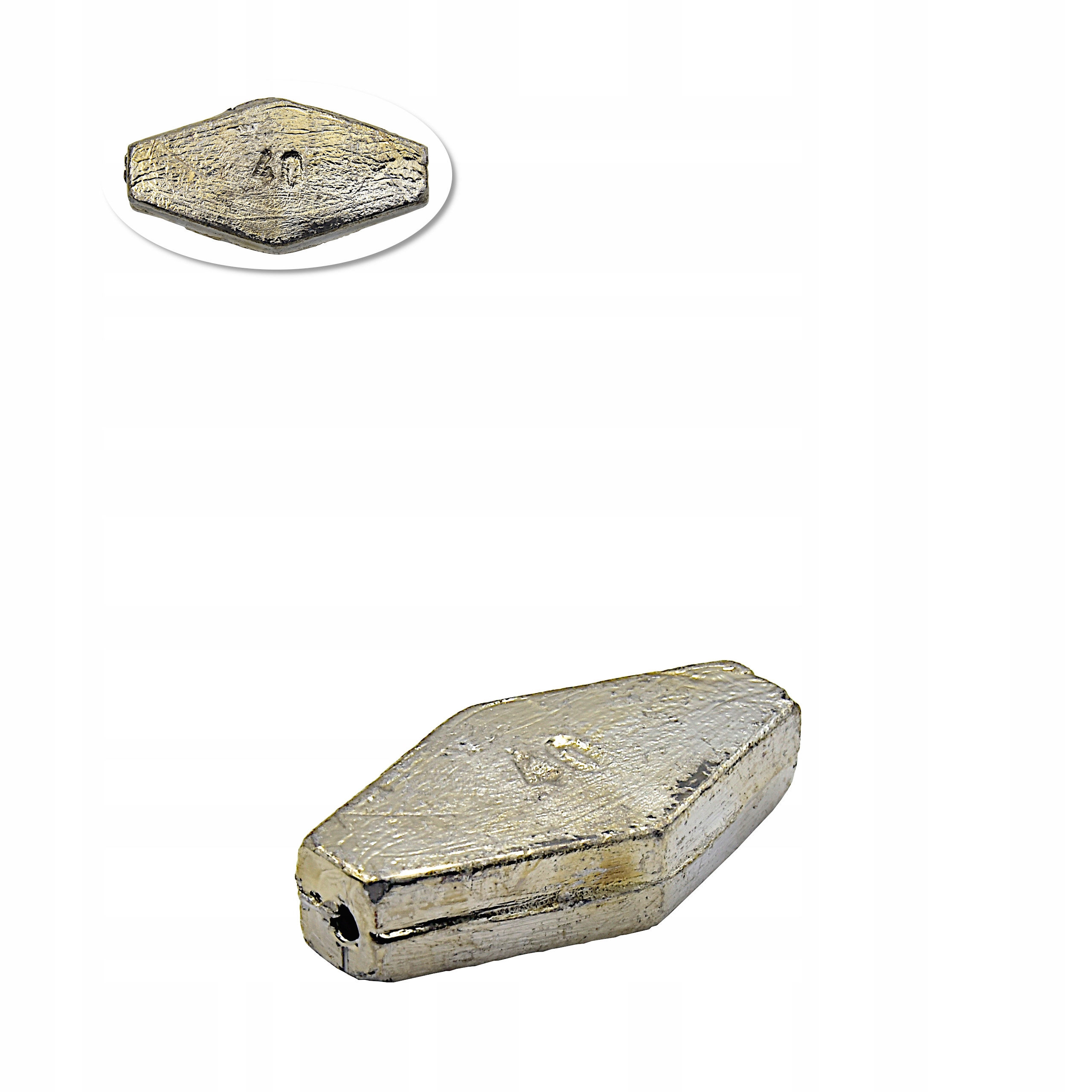 Klasyczny Niezbędnik podczas połowów gruntowych - ciężarek ołowiany płaski.