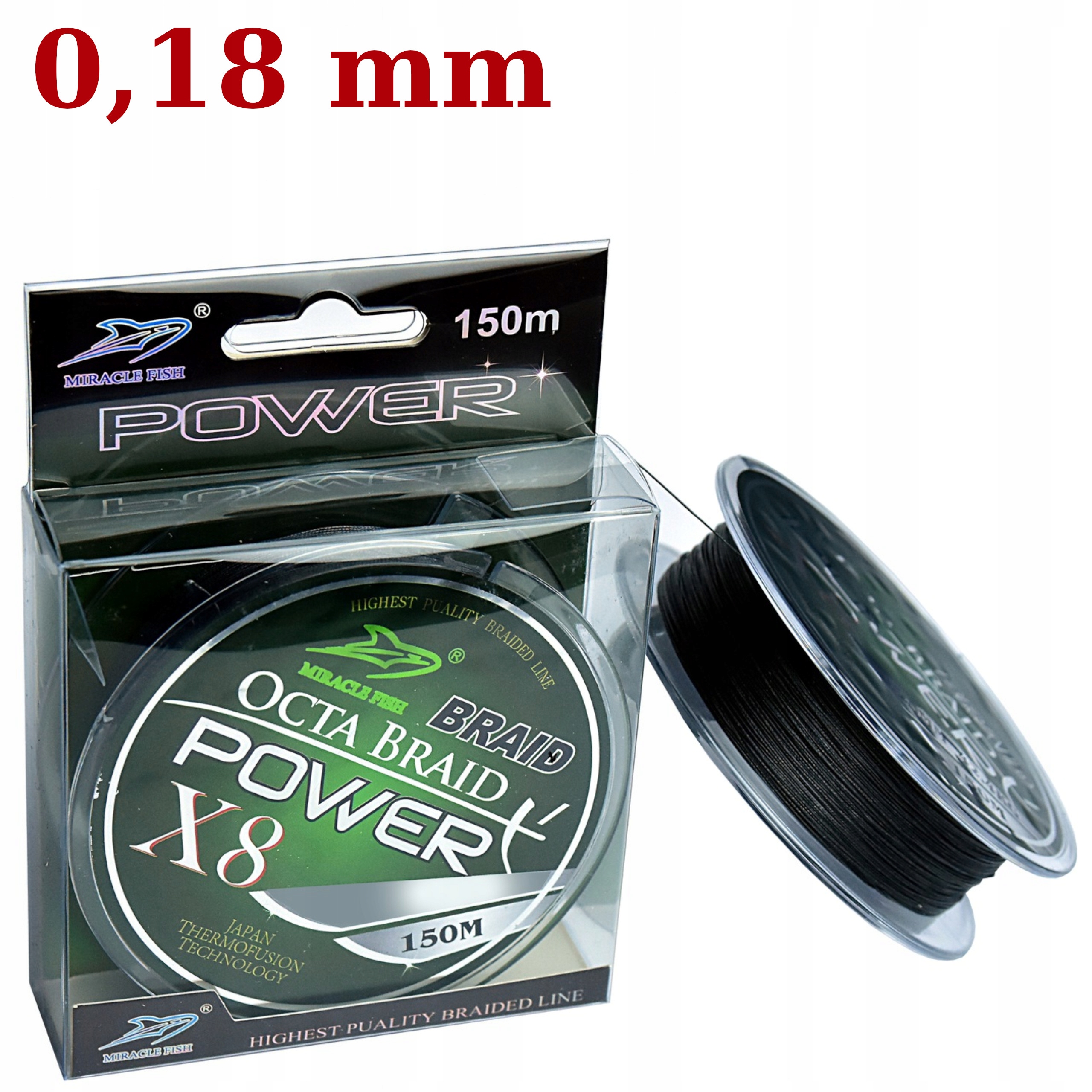 PLECIONKA WĘDKARSKA 8-splotowa 0,18 mm czarna
