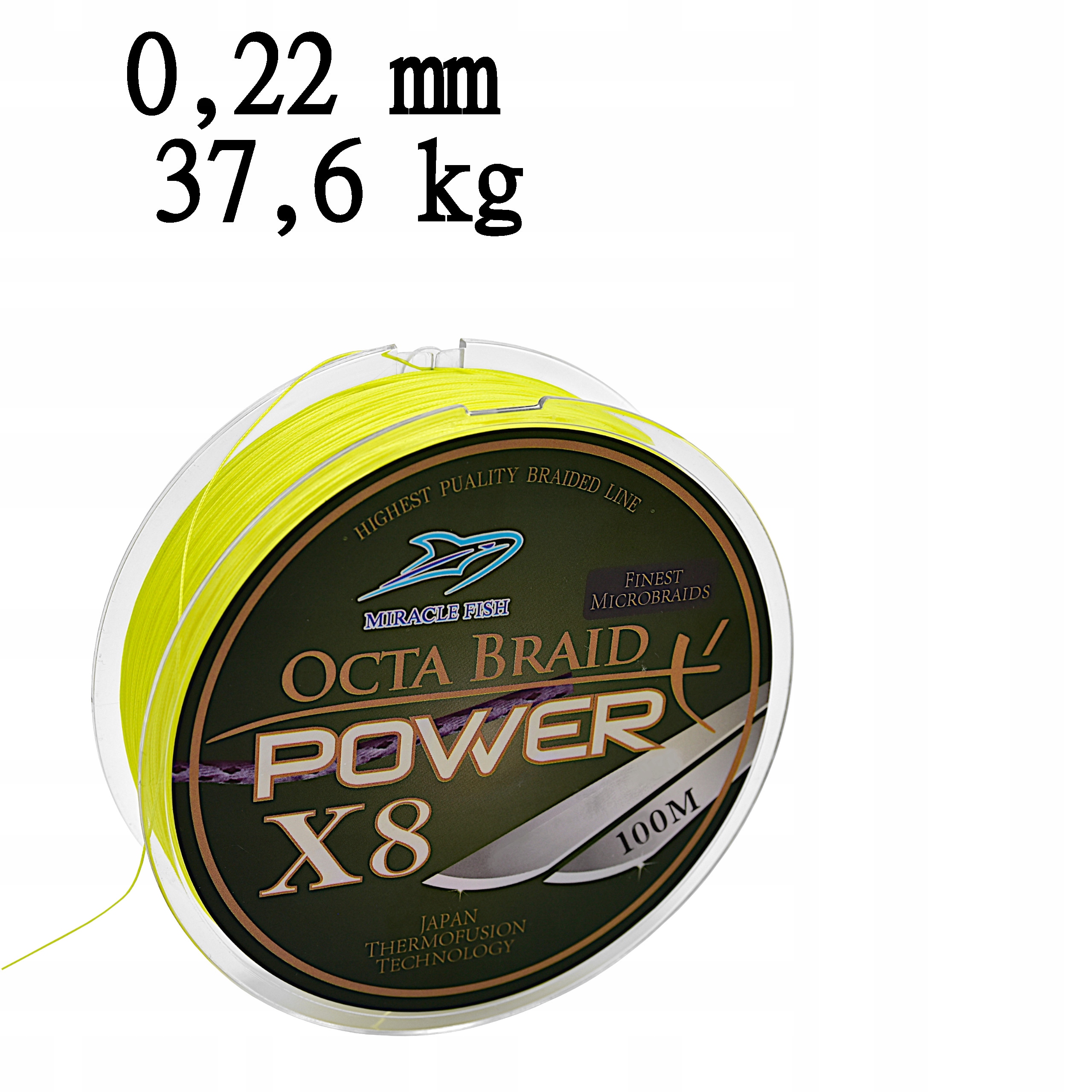 Na tej aukcji kupujesz plecionkę o rozmiarze 0,22 mm o wytrzymałości do 37,6 kg