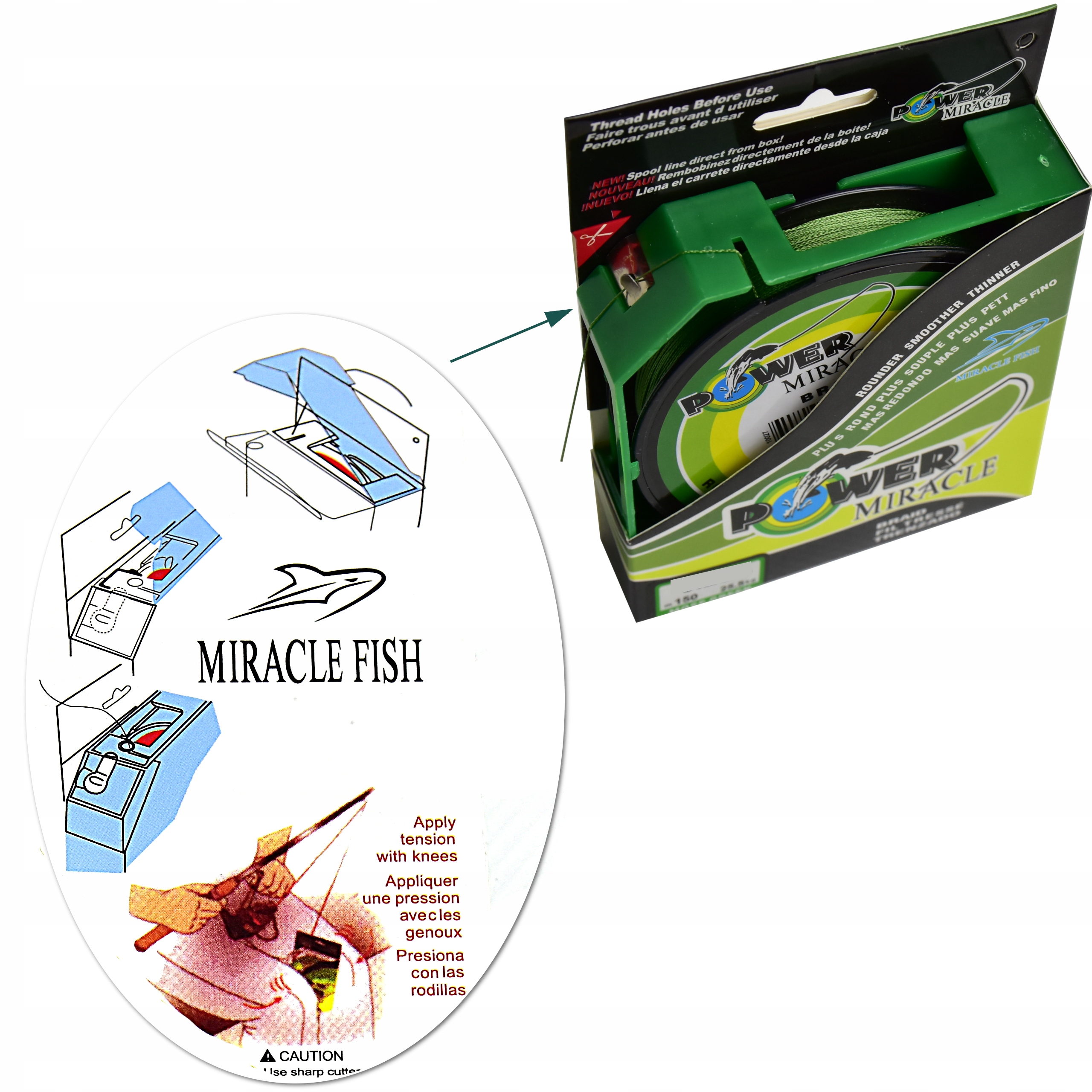 Plecionka bezpośrednio z pudełka. Zastosuj napięcie kolanami przy Przewijaniu plecionki na kołowrotek. Przytnij w dowolnym miejscu ukrytymi nożyczkami.