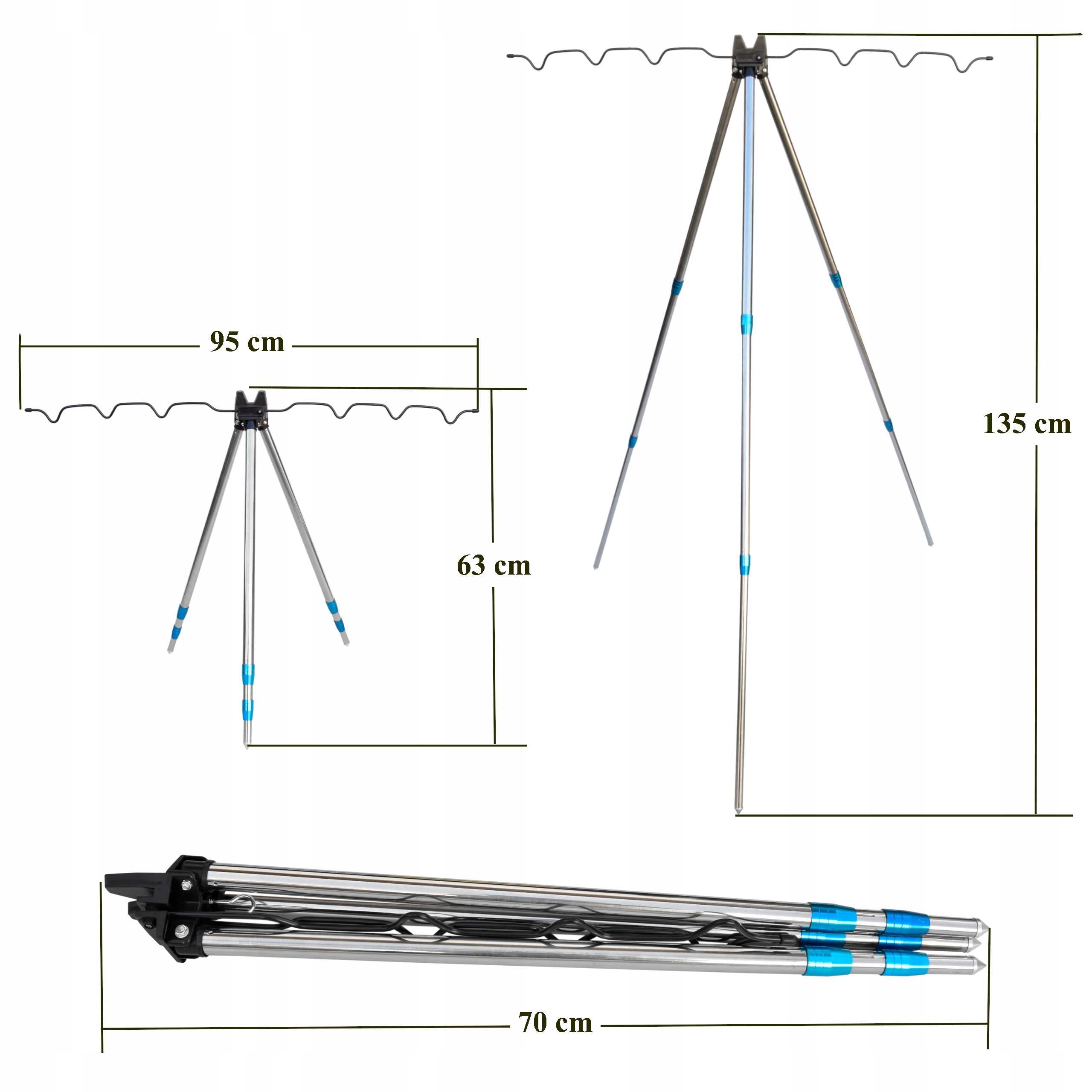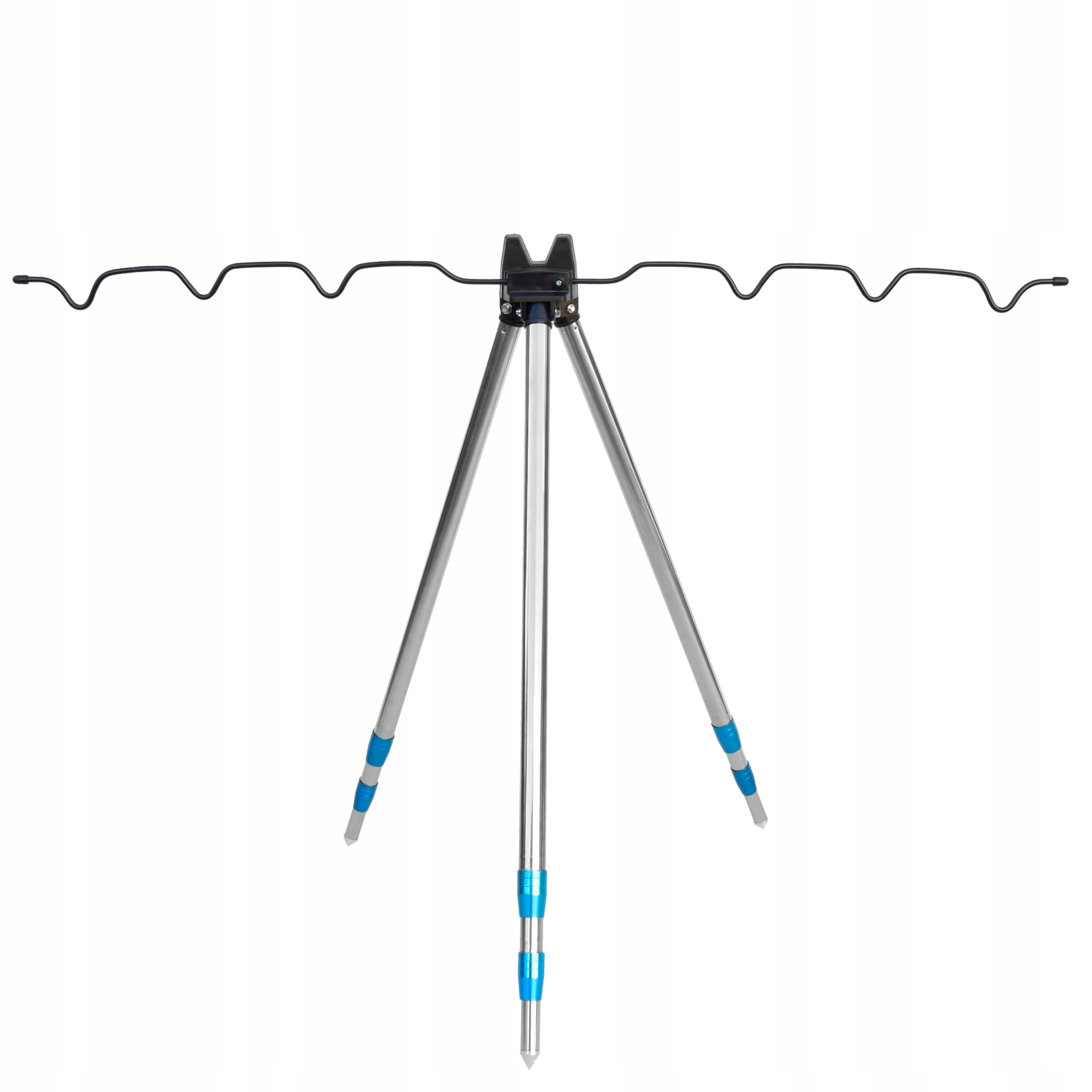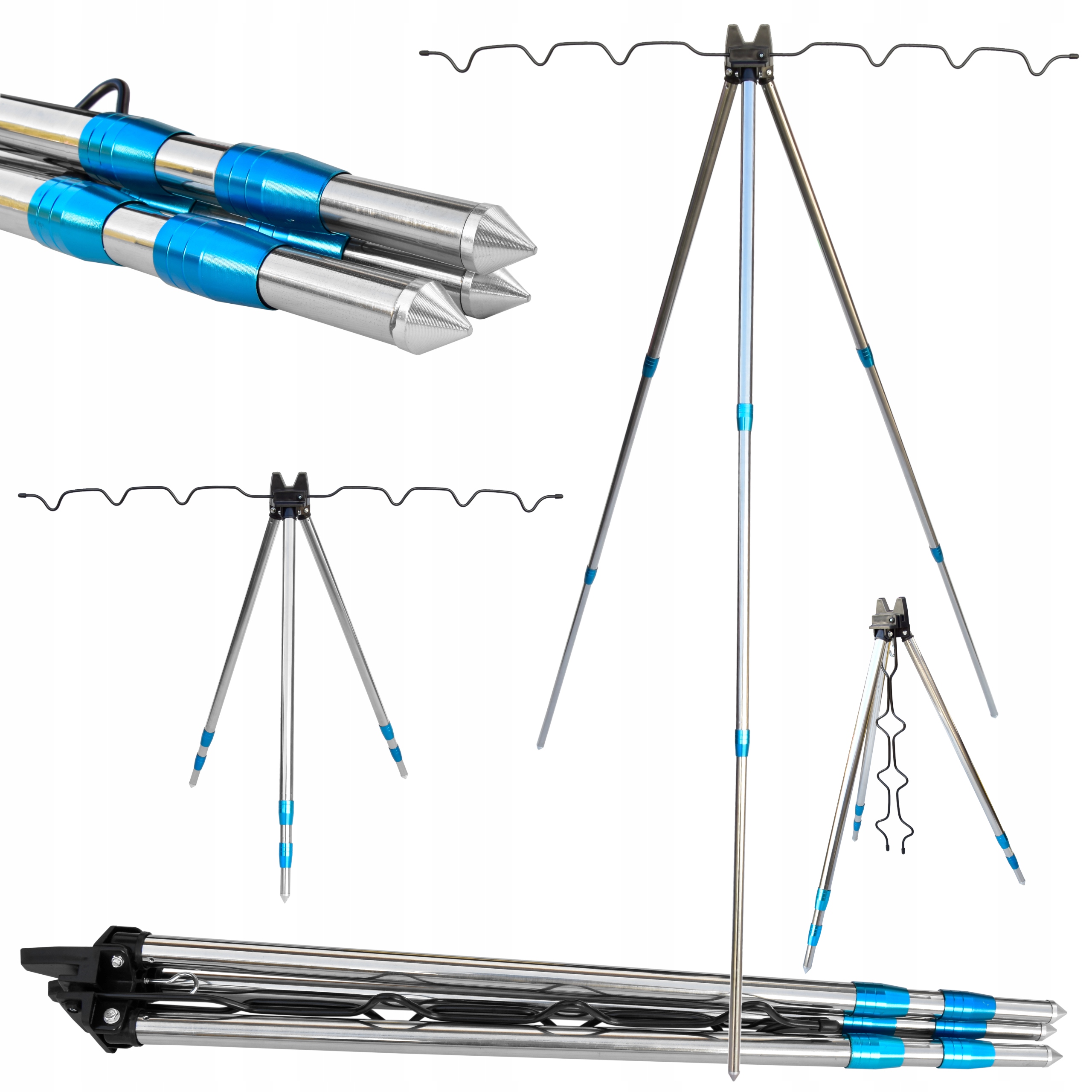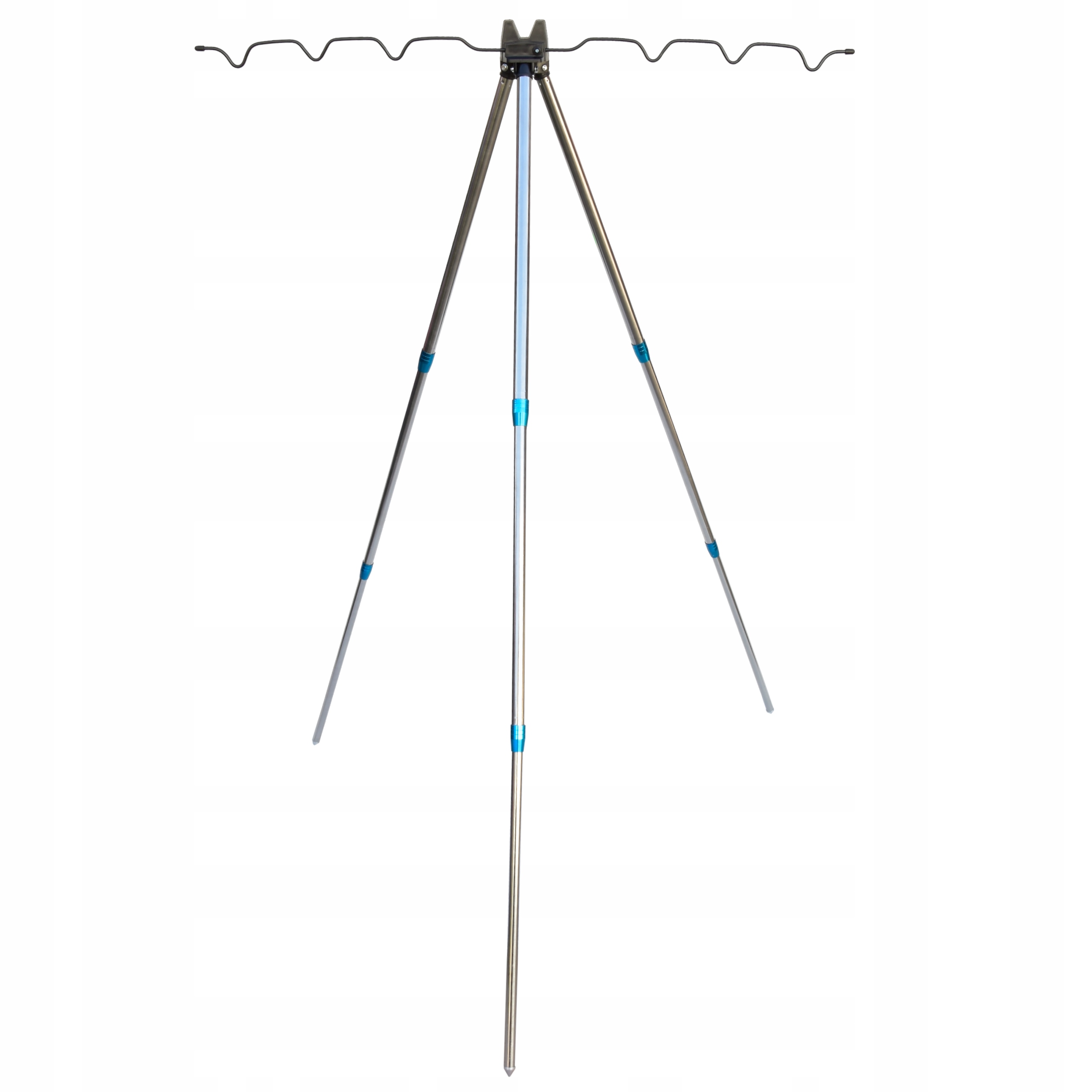 Duży stojak pod 6 wędek na 3-ch teleskopowych nogach, wykonany wysokiej jakości stali stali nierdzewnej - INOX. Teleskopowa konstrukcja pozwala nam na umieszczenie podpórki na nierównym terenie.