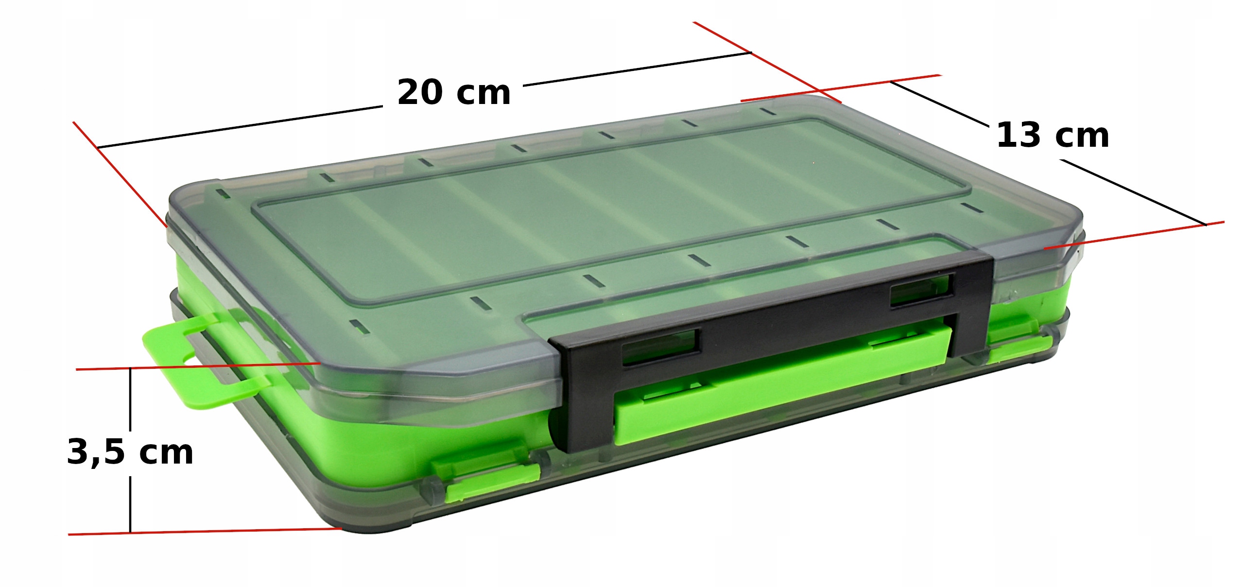 Bardzo praktyczne, - pudełko/skrzynka - DWUSTRONNE pozwoli nam na rozmieszczenie wędkarskiego ekwipunku według indywidualnych potrzeb. Idealne na przynęty, gumy, woblery i inne niezbędne akcesoria wędkarskie. Niezastąpione na wyjazdach kiedy trzeba mieć wszystko pod ręką.