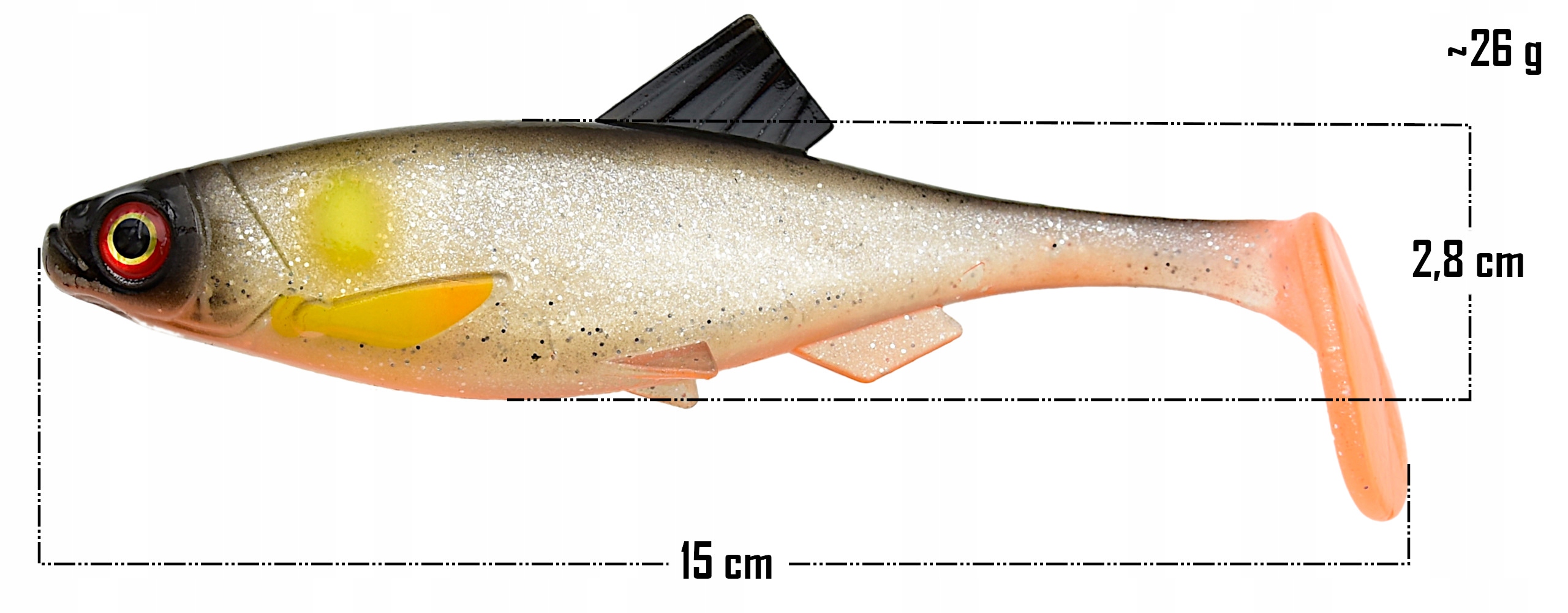 Realistyczna gumowa przynęta wędkarska, wzorowana na kształcie i kolorystyce prawdziwej ryby, zaprojektowana z myślą o skutecznym łowieniu drapieżników. Dzięki naturalnym ruchom w wodzie oraz wyrazistym barwom, idealnie imituje prawdziwą zdobycz, co skutecznie prowokuje drapieżniki do ataku.