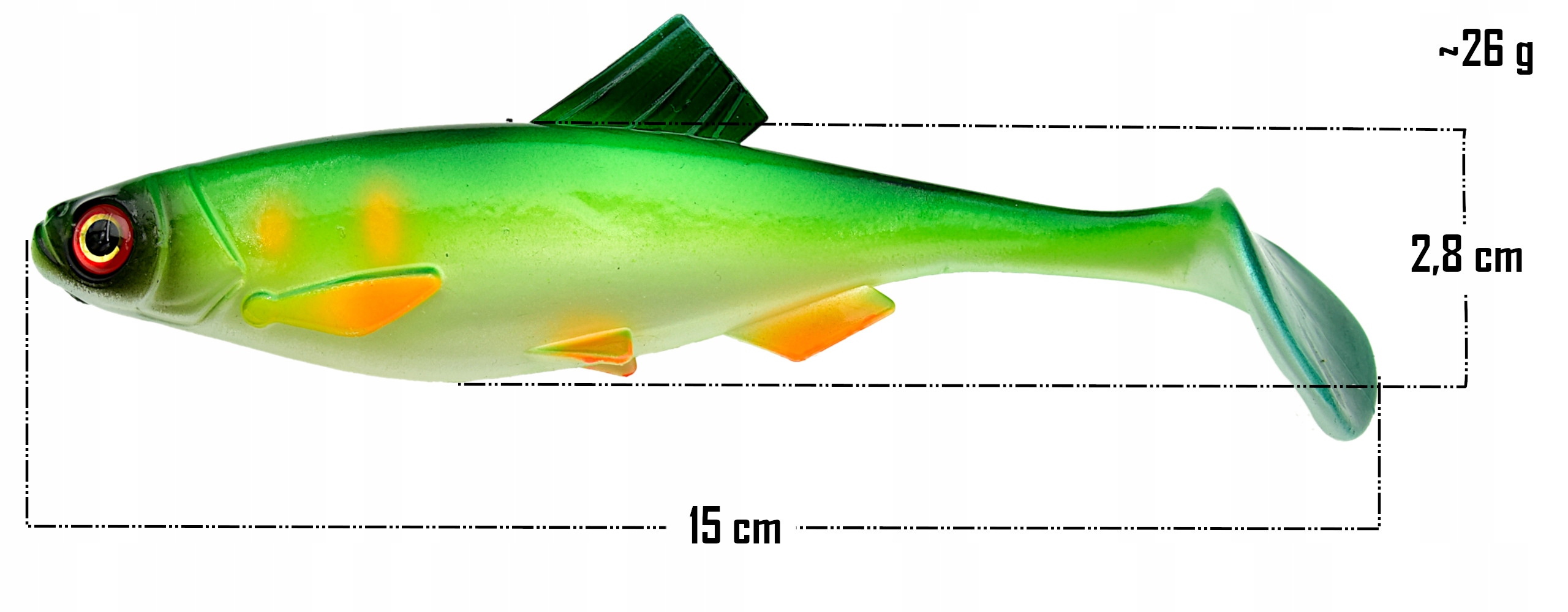 Realistyczna gumowa przynęta wędkarska, wzorowana na kształcie i kolorystyce prawdziwej ryby, zaprojektowana z myślą o skutecznym łowieniu drapieżników. Dzięki naturalnym ruchom w wodzie oraz wyrazistym barwom, idealnie imituje prawdziwą zdobycz, co skutecznie prowokuje drapieżniki do ataku.