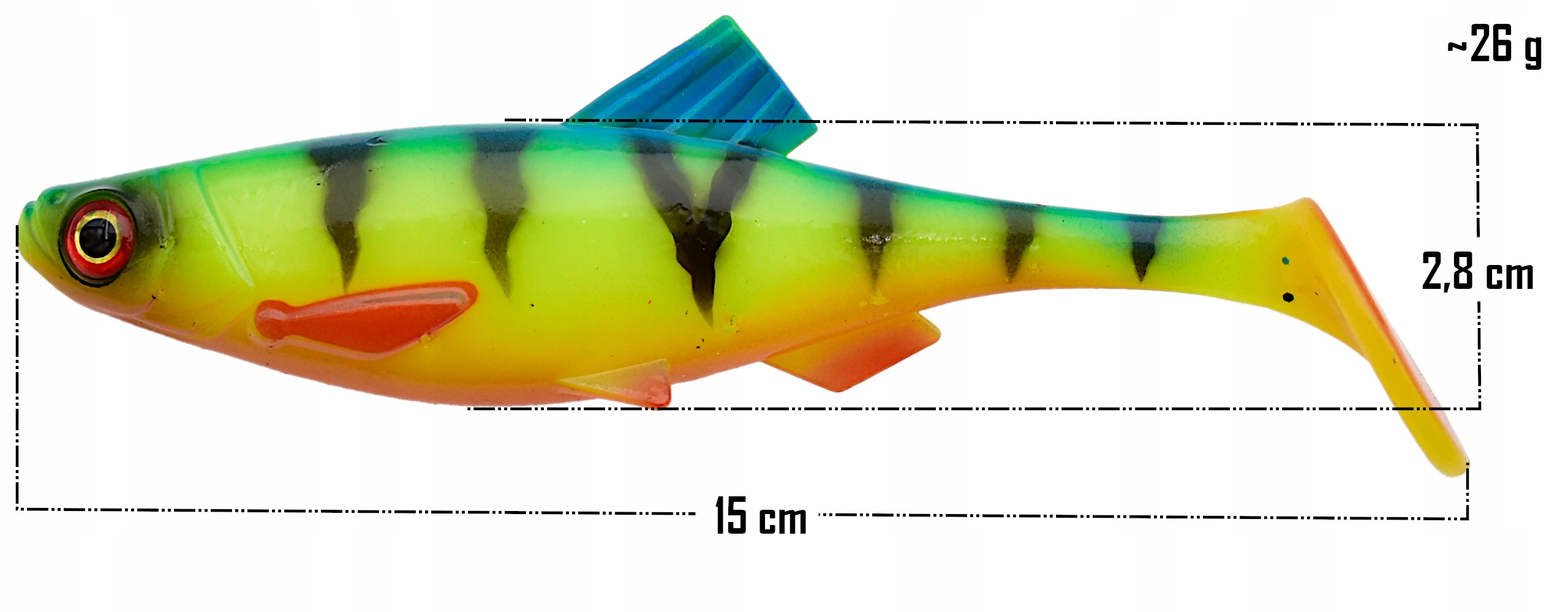 Realistyczna gumowa przynęta wędkarska, wzorowana na kształcie i kolorystyce prawdziwej ryby, zaprojektowana z myślą o skutecznym łowieniu drapieżników. Dzięki naturalnym ruchom w wodzie oraz wyrazistym barwom, idealnie imituje prawdziwą zdobycz, co skutecznie prowokuje drapieżniki do ataku.