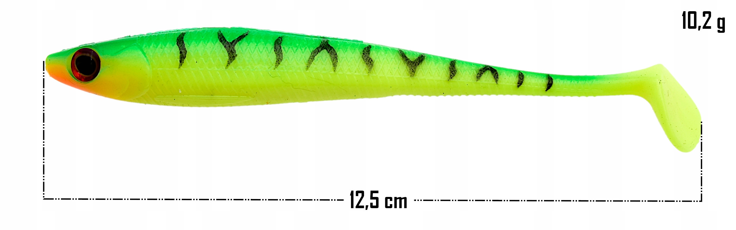 Dzięki miękkiej i elastycznej konstrukcji doskonale imituje ruchy małej rybki, a jej ogon generuje intensywną, kuszącą pracę.